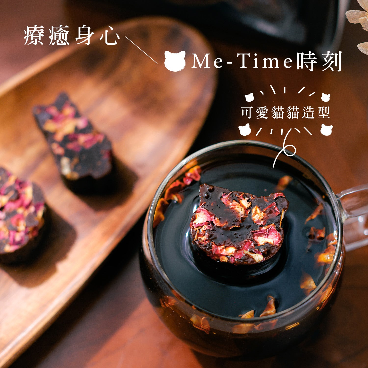 每盒糖磚均有超萌貓咪頭及呆坐貓咪背影兩款造型。凝望可愛貓糖磚於杯中漸漸溶化,使你頓時忘卻煩擾,為沉悶生活增添色彩。細味以台灣古方匠心熬煮的糖磚,讓你隨時享受,仿如置身台灣的Me-Time時刻。