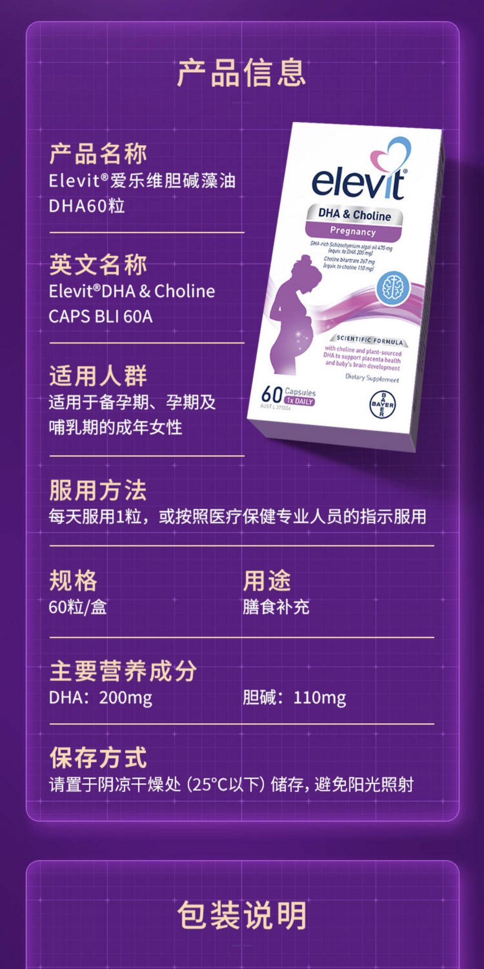 elevit DHA & Choline Pregnancy 60 Capsules 1 bottle