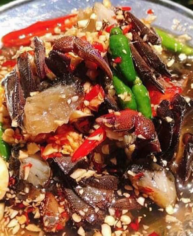 ba khía ngon, trộn thêm xoài và chanh xuất sắc
