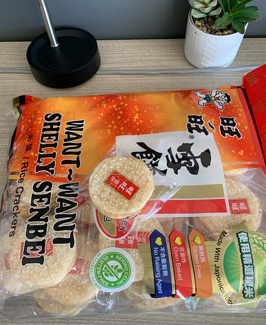 Những chiếc bánh gạo/bánh quy nhỏ này siêu gây nghiện, giòn tan, mặn ngọt và mình thực sự rất thích chúng. Mình có một hộp nhỏ để đựng tất cả các món ăn vặt WEE của mình và mình yêu thích tất cả các loại bánh gạo Want Want.