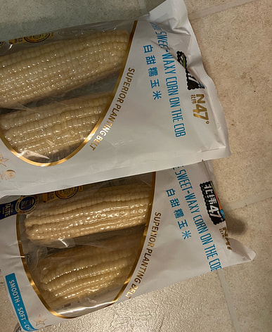 Bắp ngô có màu đen. Nó dai vừa phải và không quá ngọt, nhưng tôi đã mua nó ba lần rồi.