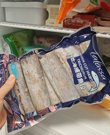 Cá ruy băng đánh bắt tự nhiên, cắt thành từng khúc, được mua nhiều lần.