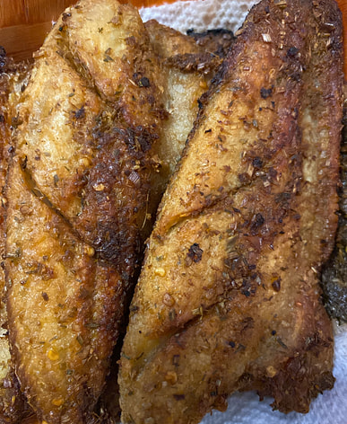 ca tươi ngon. chiên ăn với cơm và rau