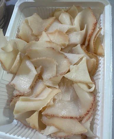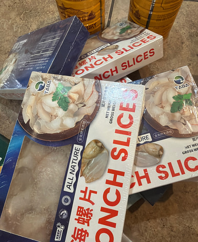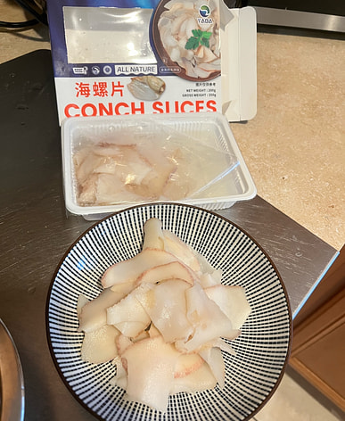Những lát ốc xà cừ rất to và nhiều. Chúng ta sẽ dùng một nửa cho lẩu và nửa còn lại để xào.