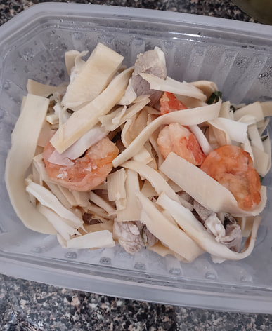 Tôi làm món gỏi Việt Nam. Nó rất ngon. Ngâm xà phòng vào nước nóng khoảng 40 phút, sau đó đổ nước đi và tiếp tục ngâm xà phòng với nước nóng. Sau đó, vắt cho đến khi khô. Cắt xà phòng thành 2 hoặc 3 miếng có chiều dài bằng nhau. Cho một ít đường vào khoảng 30 phút. Sau đó trộn với nước mắm + giấm + rau ram + hành khô + thịt xông khói (thịt lợn) + tôm. Thưởng thức món gỏi. Ngon tuyệt.