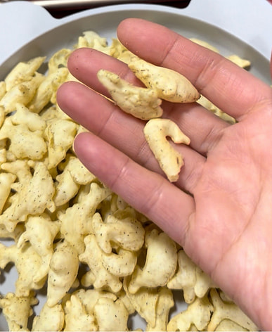 Các bé rất thích vị mặn, giòn tan của những chiếc chả cá nhỏ này.