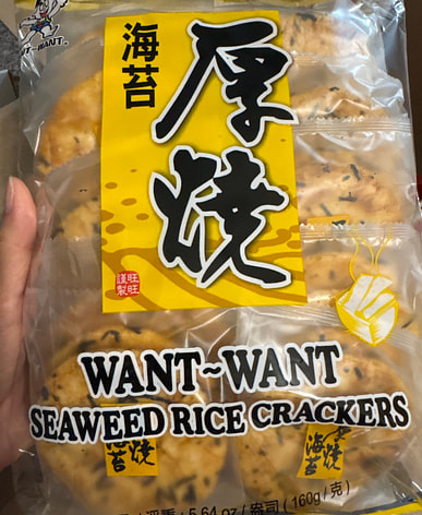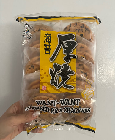 Tôi thường mua bánh gạo Want Want để ăn.