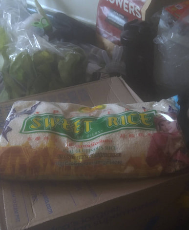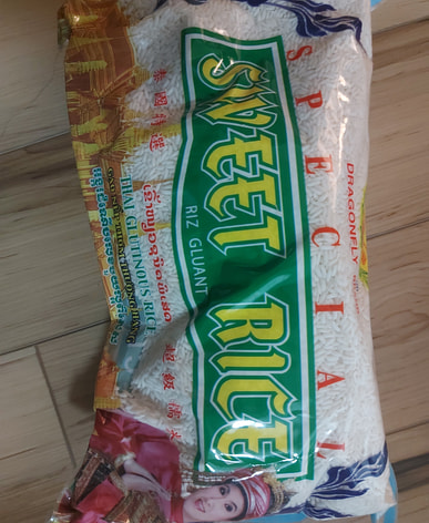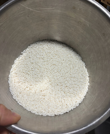 Hạt gạo căng tròn và đều nhau; tôi đang chuẩn bị làm món sườn gạo nếp hấp.