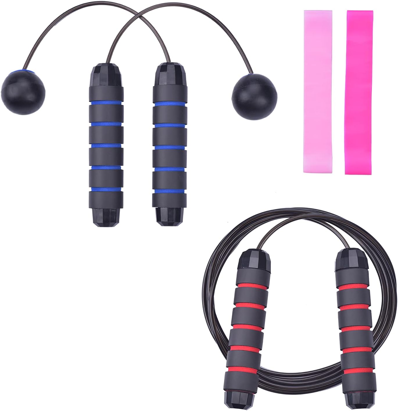 2 件装跳绳,VIBUFF 无绳跳绳 + 可调节跳绳,适合儿童、女性和男性,2 个阻力环带,适合不同健身水平、速度训练和锻炼家/健身房/办公室