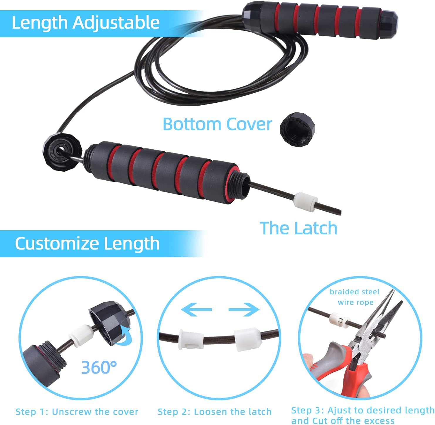 - 【360 度滚珠轴承和防缠结】采用 360 度滚珠轴承,运动平稳,可确保自由稳定地快速旋转,更好地控制手柄和跳跃。使用这款健身跳绳告别缠结和打结。非常适合健身房、家庭、学校或办公室。适用于综合格斗 (MMA)、拳击、速度训练、力量训练和运动。