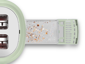 烤麪包機後面的滑出式麪包屑托盤可輕鬆取出進行清潔。