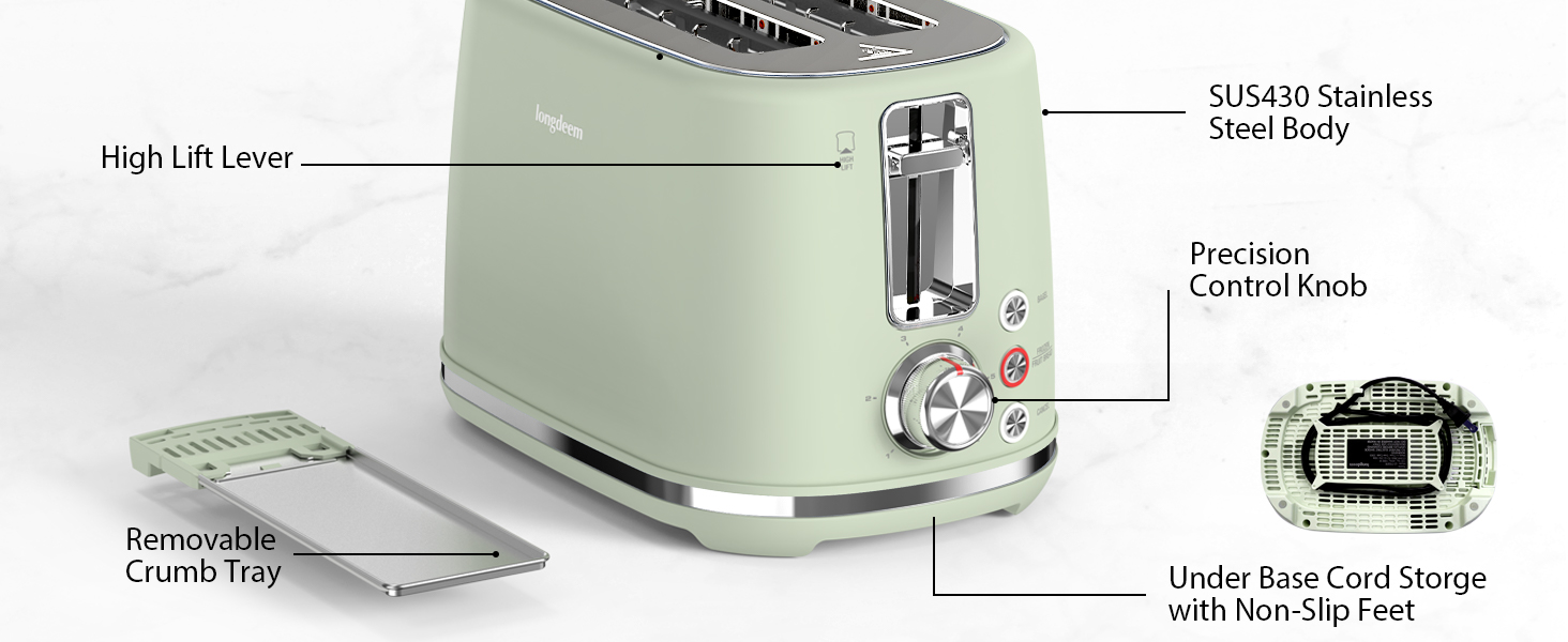 【易於清潔的設計】這款 Longdeem 烤麪包機採用智能設計的前麪包屑托盤,可輕鬆清潔。將其滑出,清除碎屑,然後滑回 - 無需擡起。還包括一條方便佈線的 39.37 英寸電源線(從後面出來)和一個電線纏繞器,可實現無雜亂存儲。