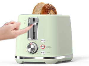 烤麪包機的槓桿在完成後會自動彈出,額外提升的托架控制桿,可安全取出麪包片。