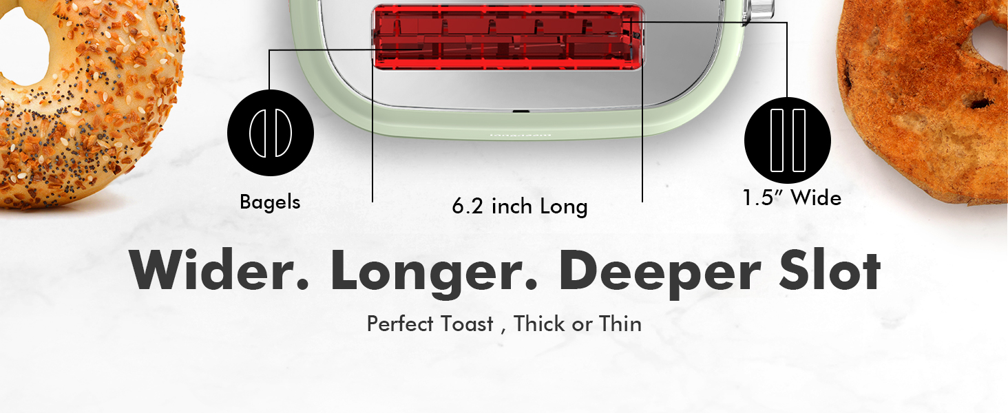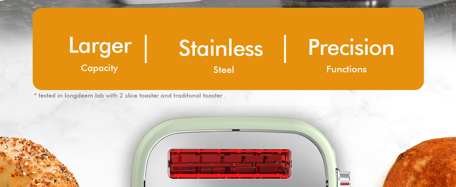 【2 片大槽烤麪包機】我們寬敞的 2 片 Longdeem 烤麪包機可滿足您所有的烘烤需求。充足的插槽可容納更大的手工麪包、大塊百吉餅和厚糕點,每次都能均勻烘烤出熱氣騰騰、酥脆可口的麪包。是豐盛早餐或鬆脆小吃的理想選擇。