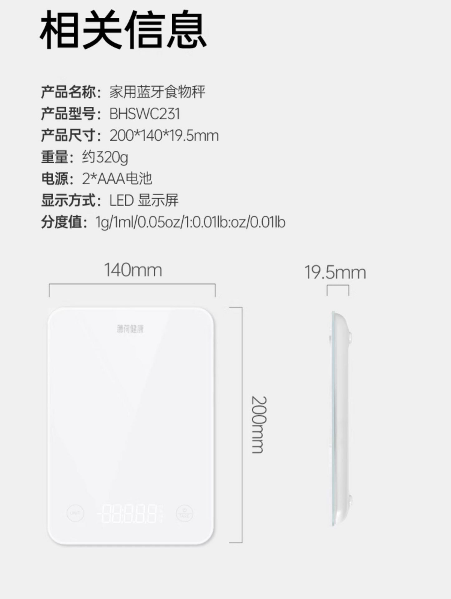 Bluetooth Food Scale Gram Scale 1 Pack 1 phần