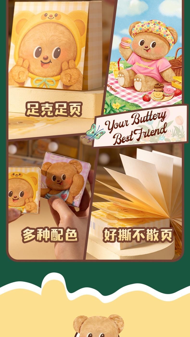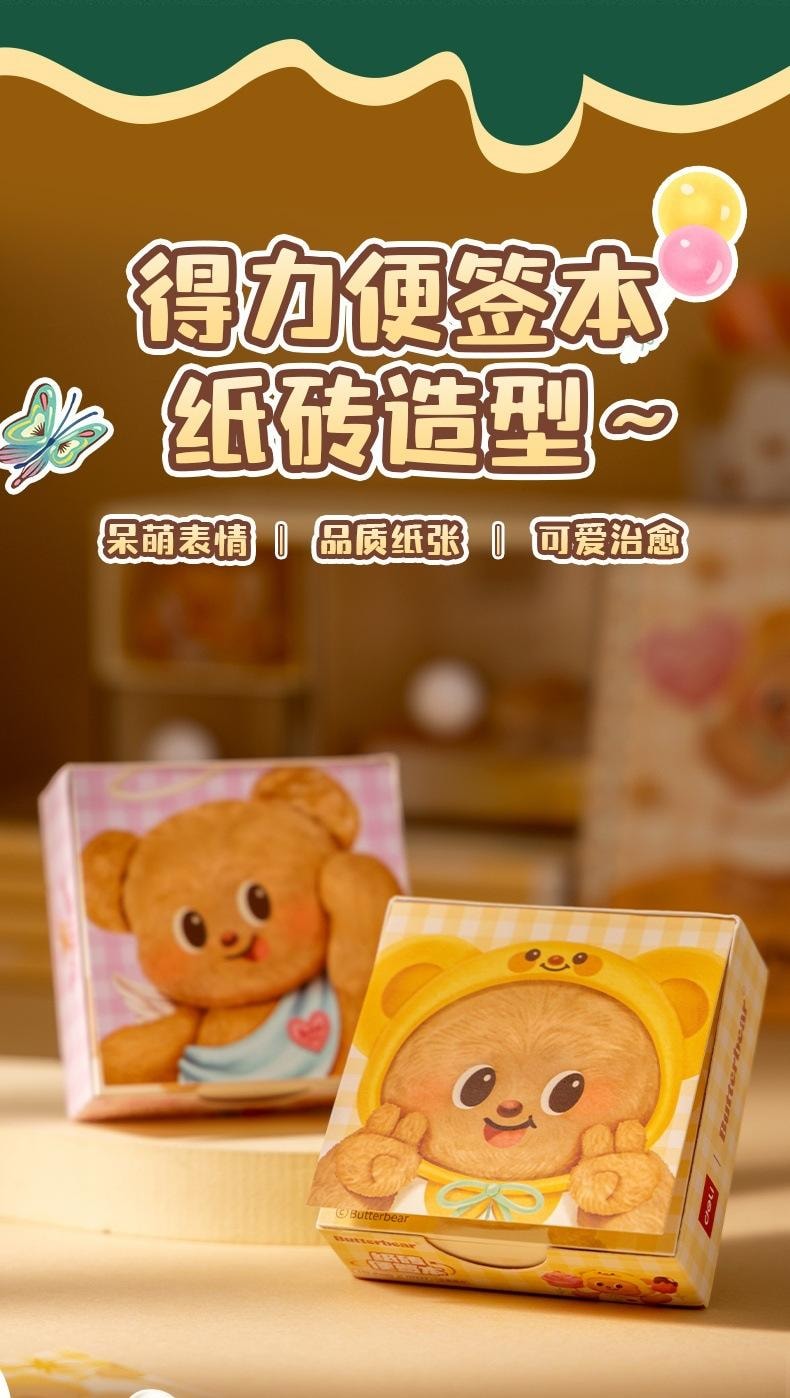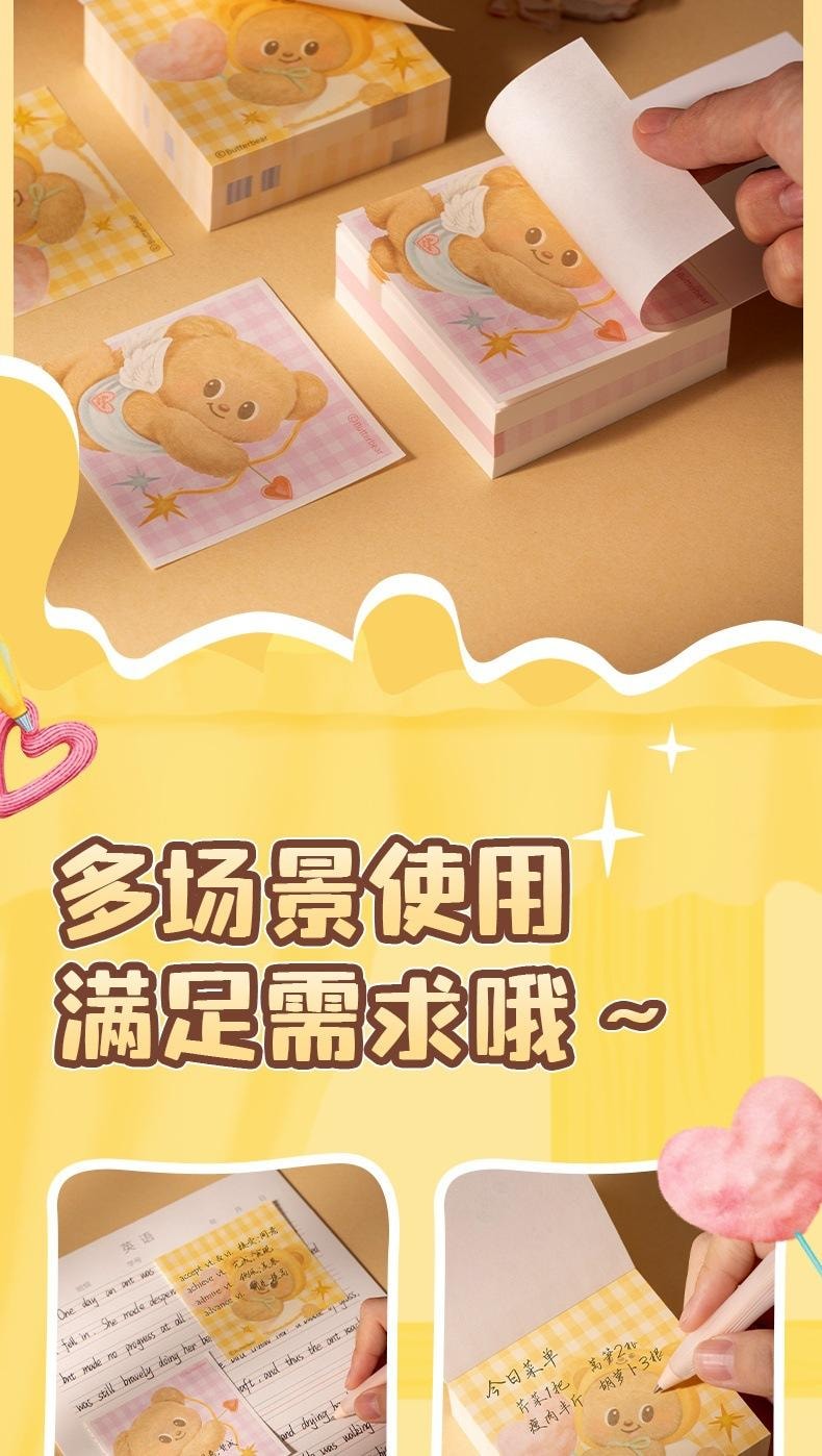 黃油小熊紙磚便籤本 無粘性 便籤紙 標籤本 2本 1 份