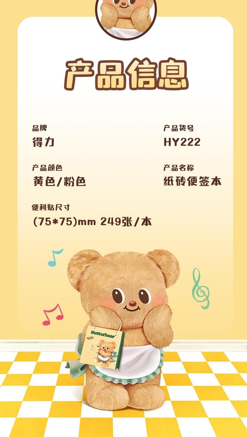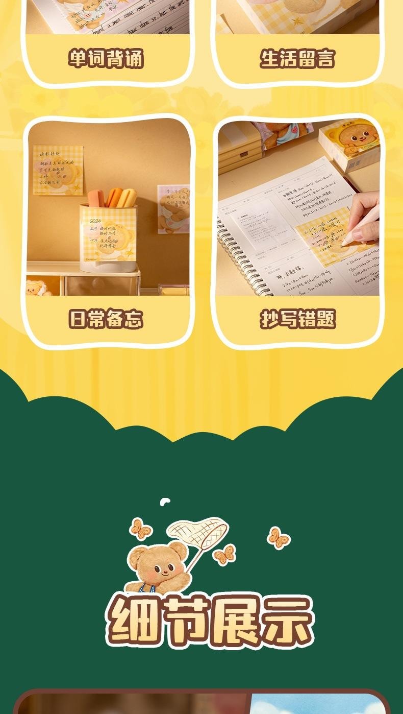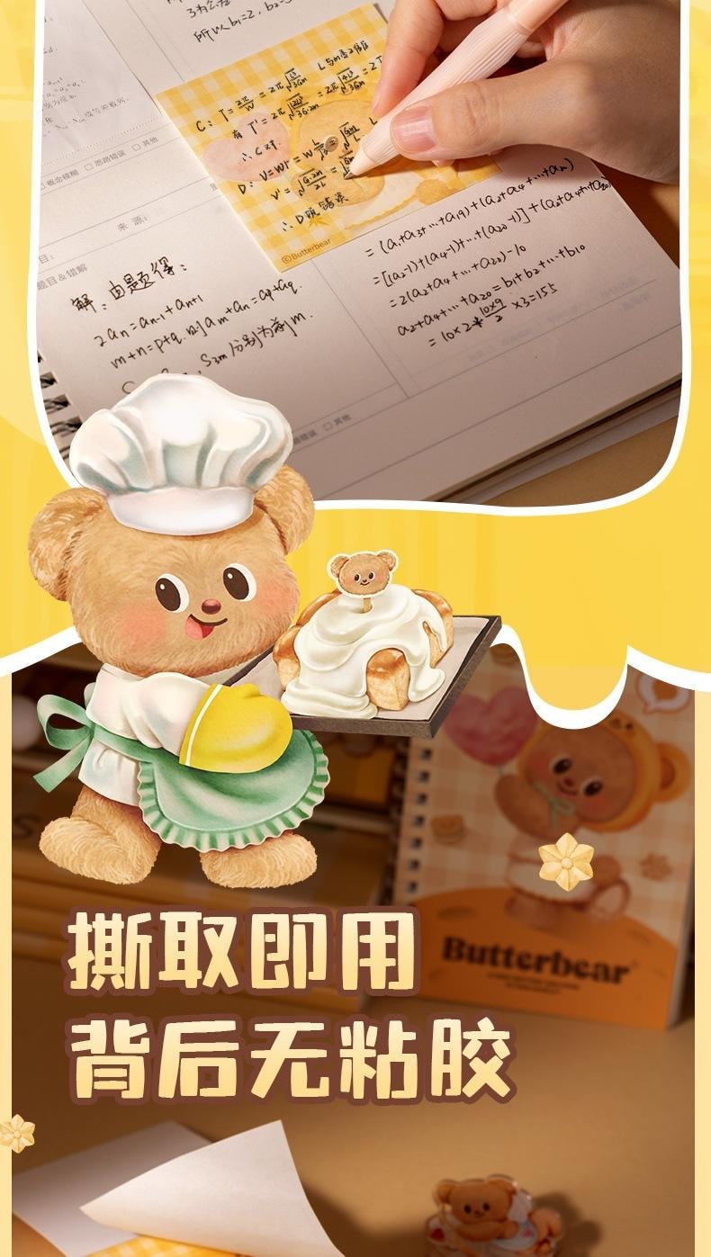 黃油小熊紙磚便籤本 無粘性 便籤紙 標籤本 2本 1 份