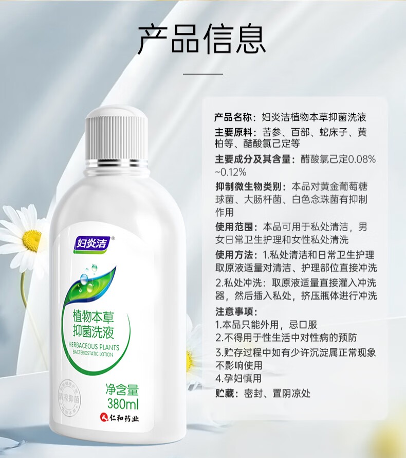 婦炎潔 女士洗液 植物本草抑菌洗液(380ML/瓶,1瓶裝) 380 毫升