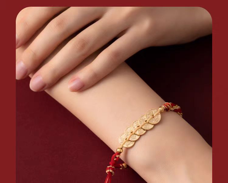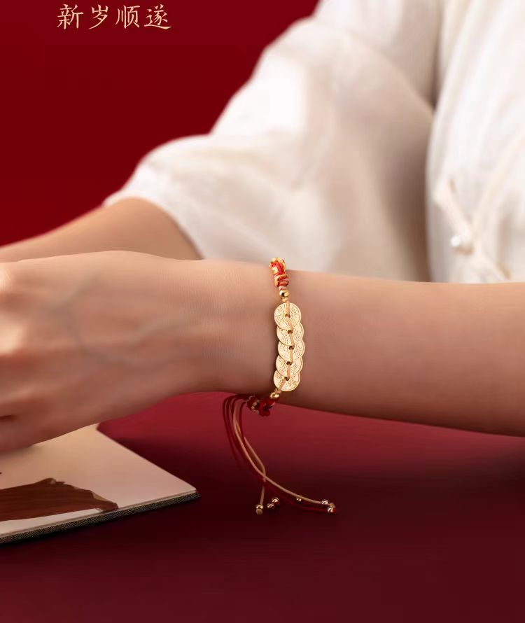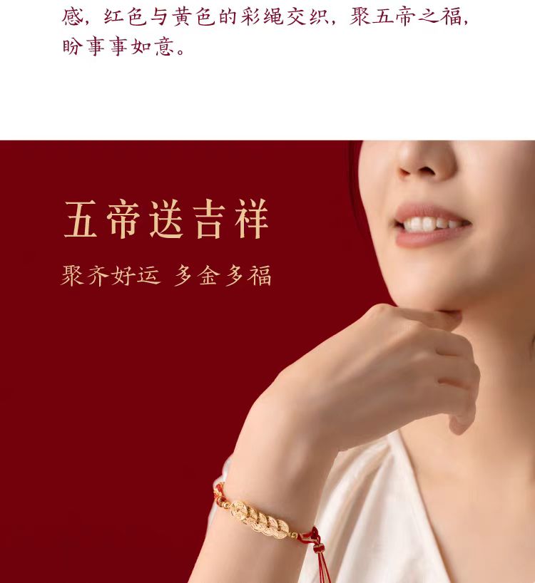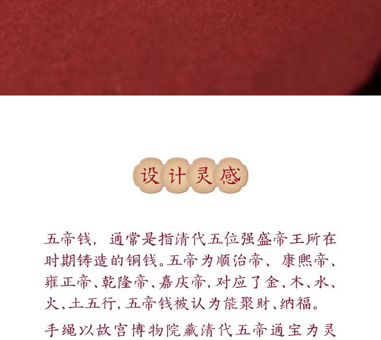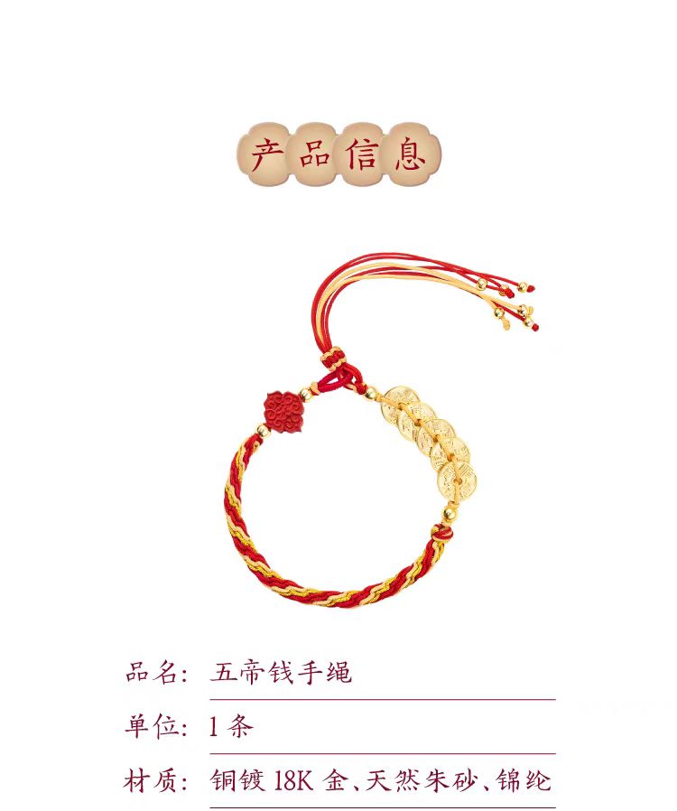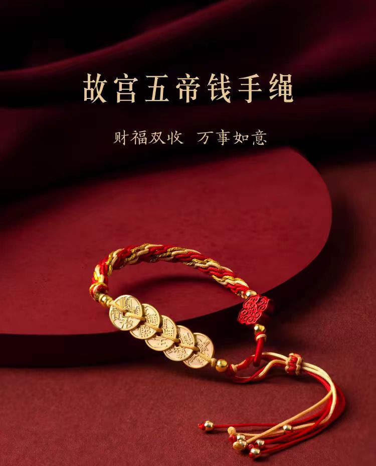 故宮文創 五帝錢紅繩手鍊 博物館文創本命年手繩禮物 1 份