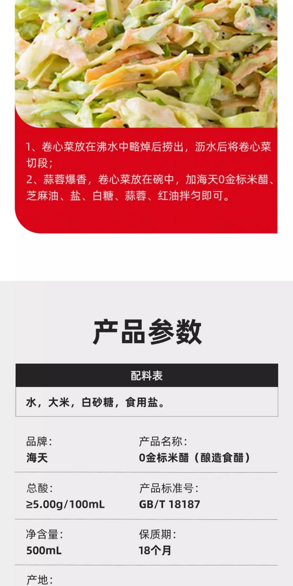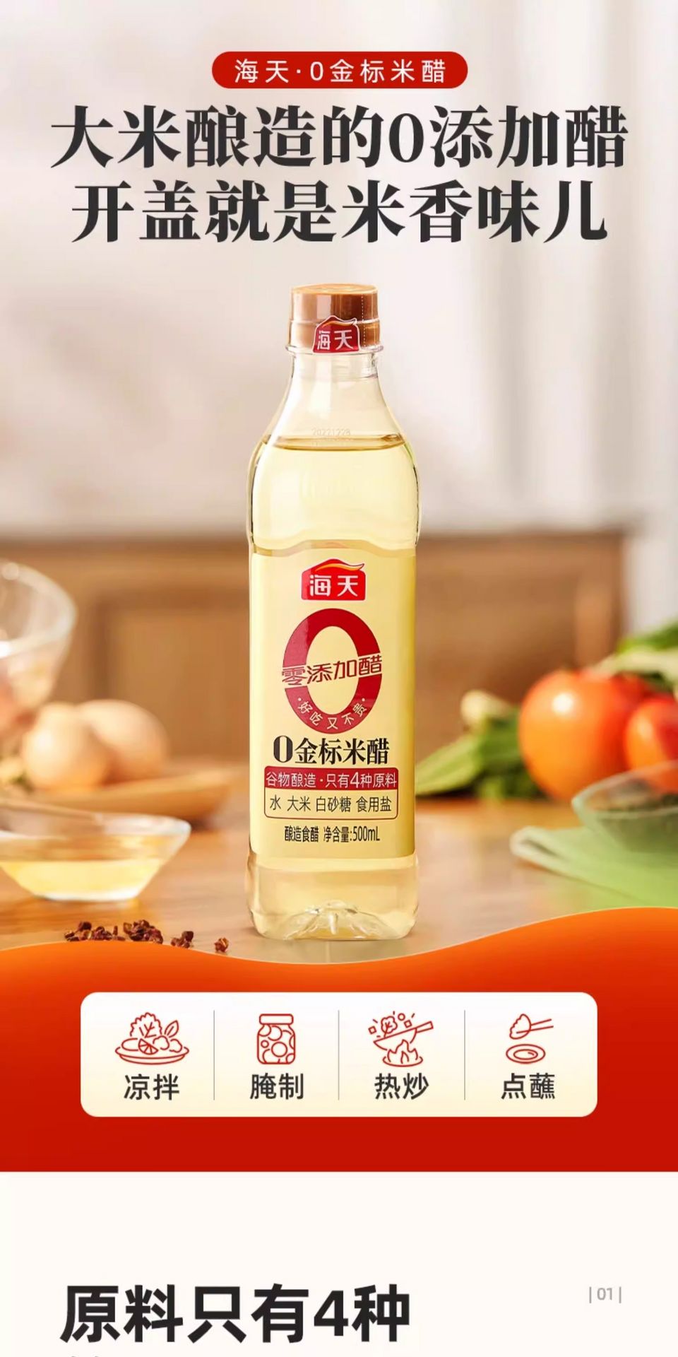 Haitian Zero Additive Rice Vinegar 500ml 500 ml