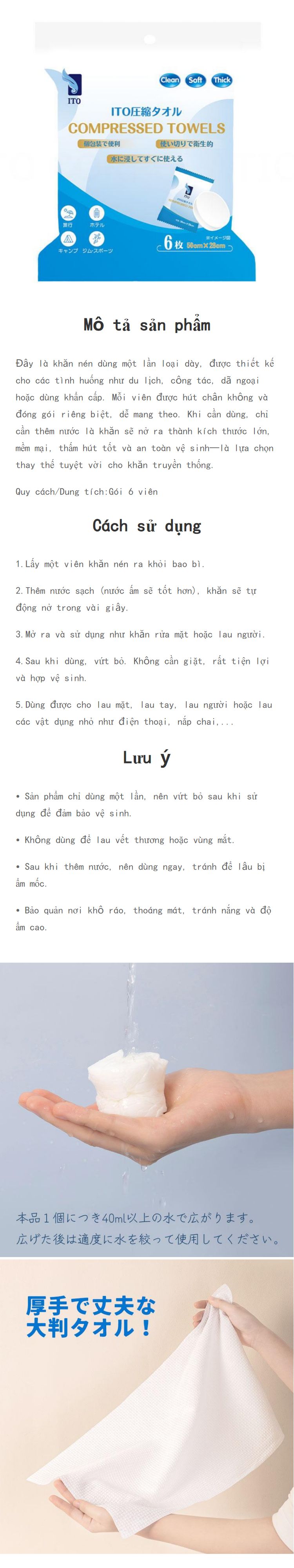 ITO Compressed Towels 6 Sheets 1 each