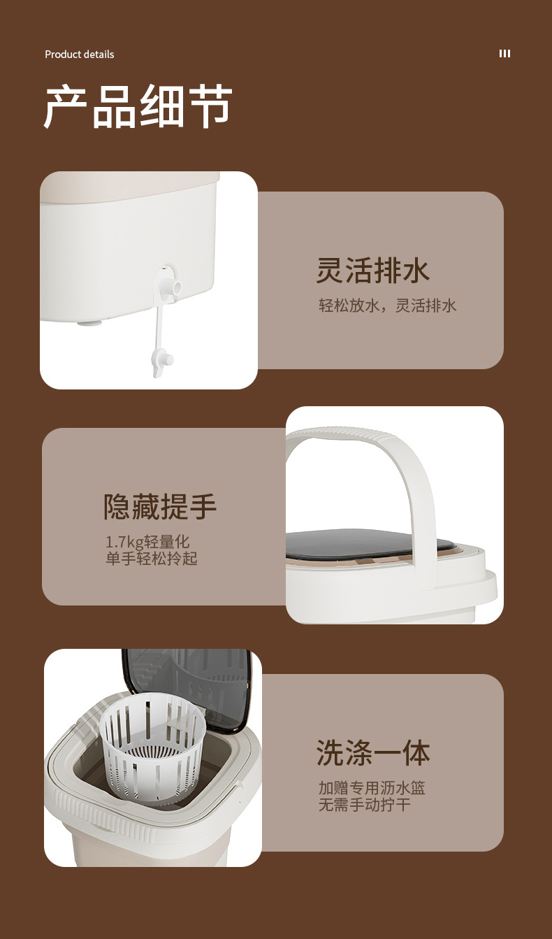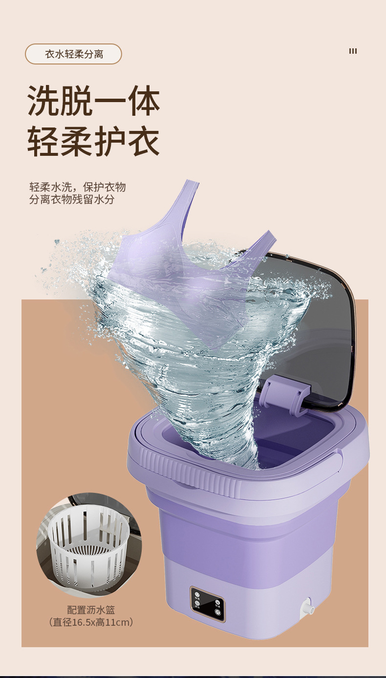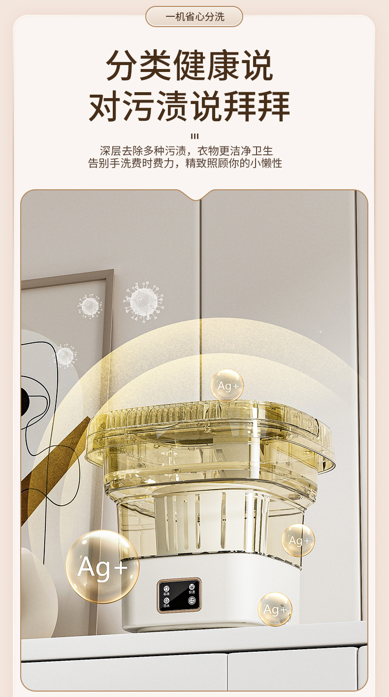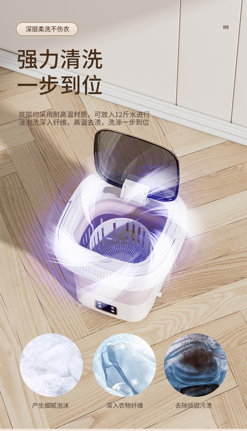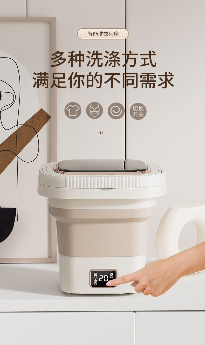 Intelligent Digital Display Folding Washing Machine White 9L 1 phần