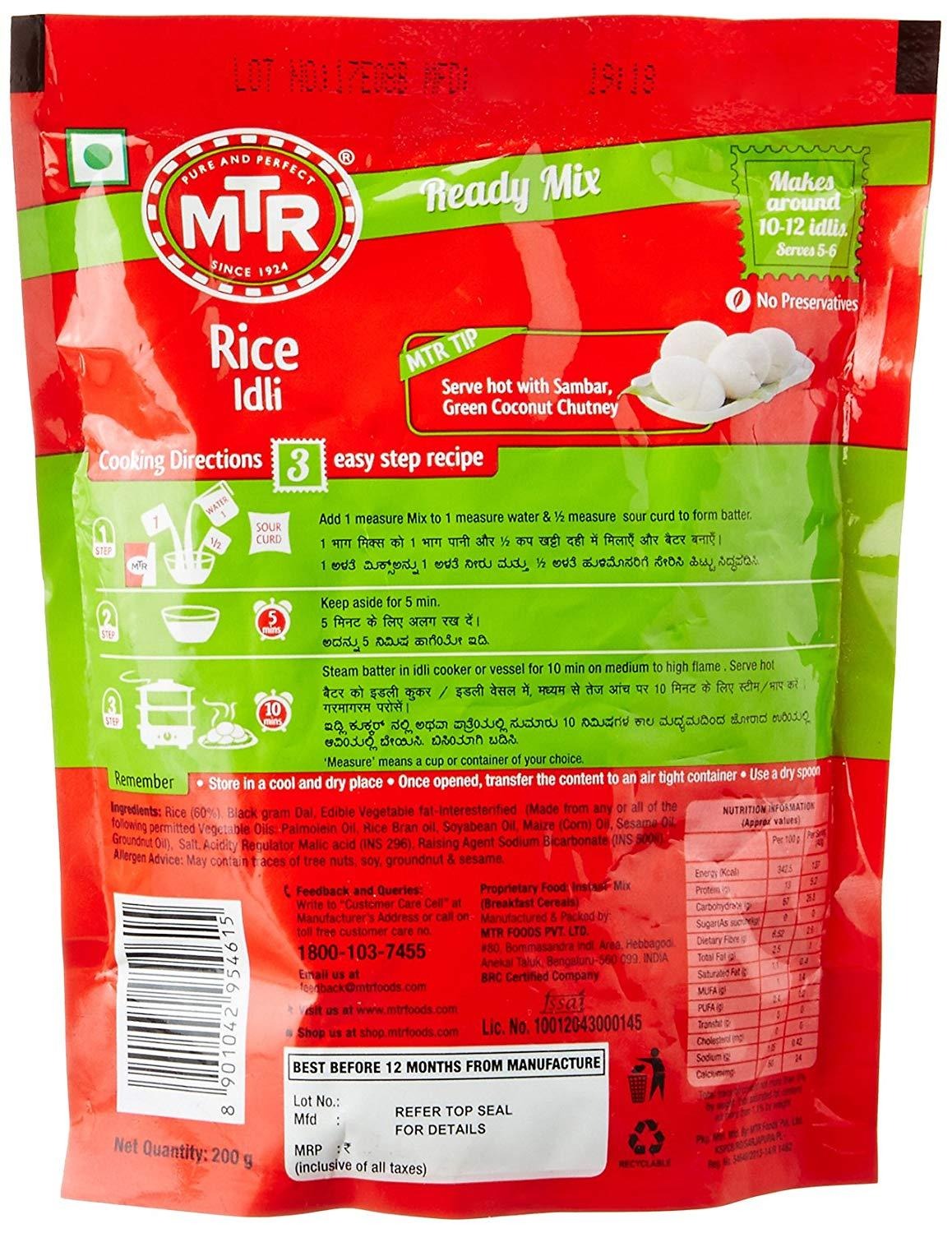 MTR 이들리 인도식 찐빵 믹스 200 그램