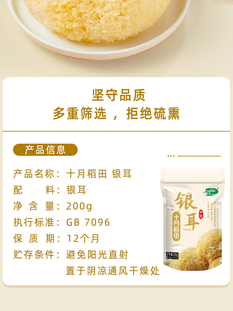 十月稻田银耳干货白木耳200g 200 克