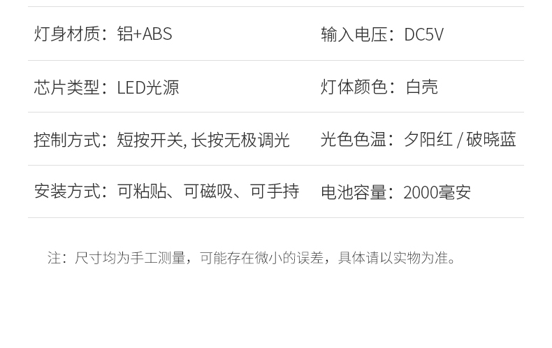 免打孔免佈線免安裝觸摸開關2000毫安