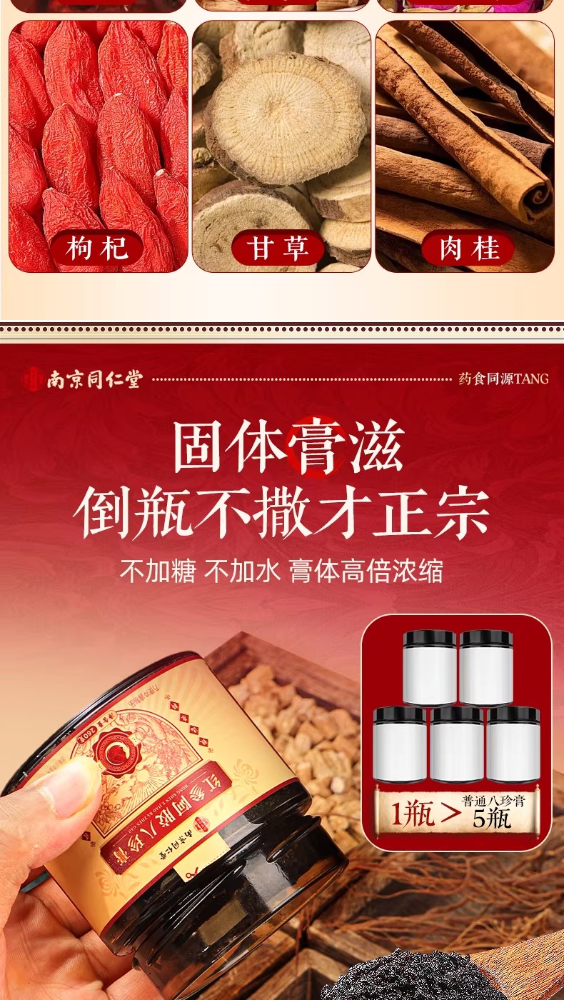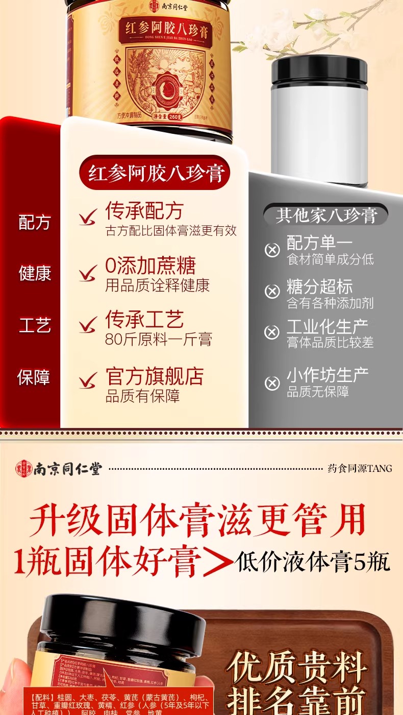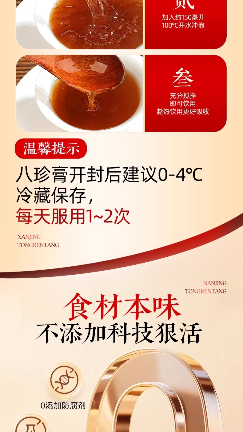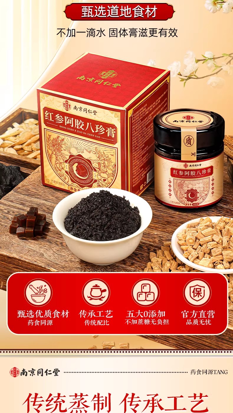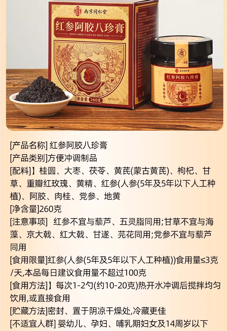 南京同仁堂紅參阿膠八珍膏補氣補養雙血調理養生膏 260 克