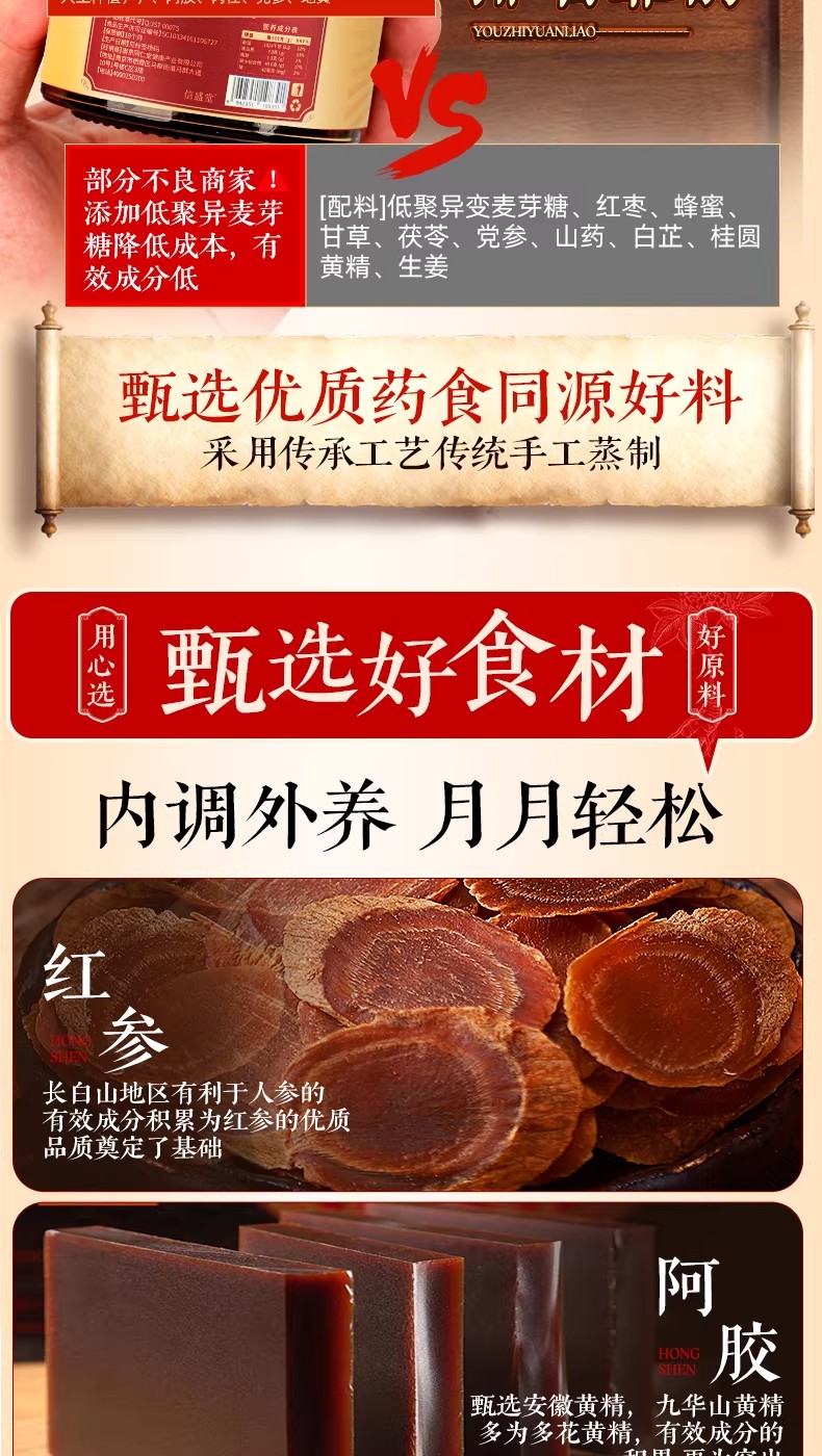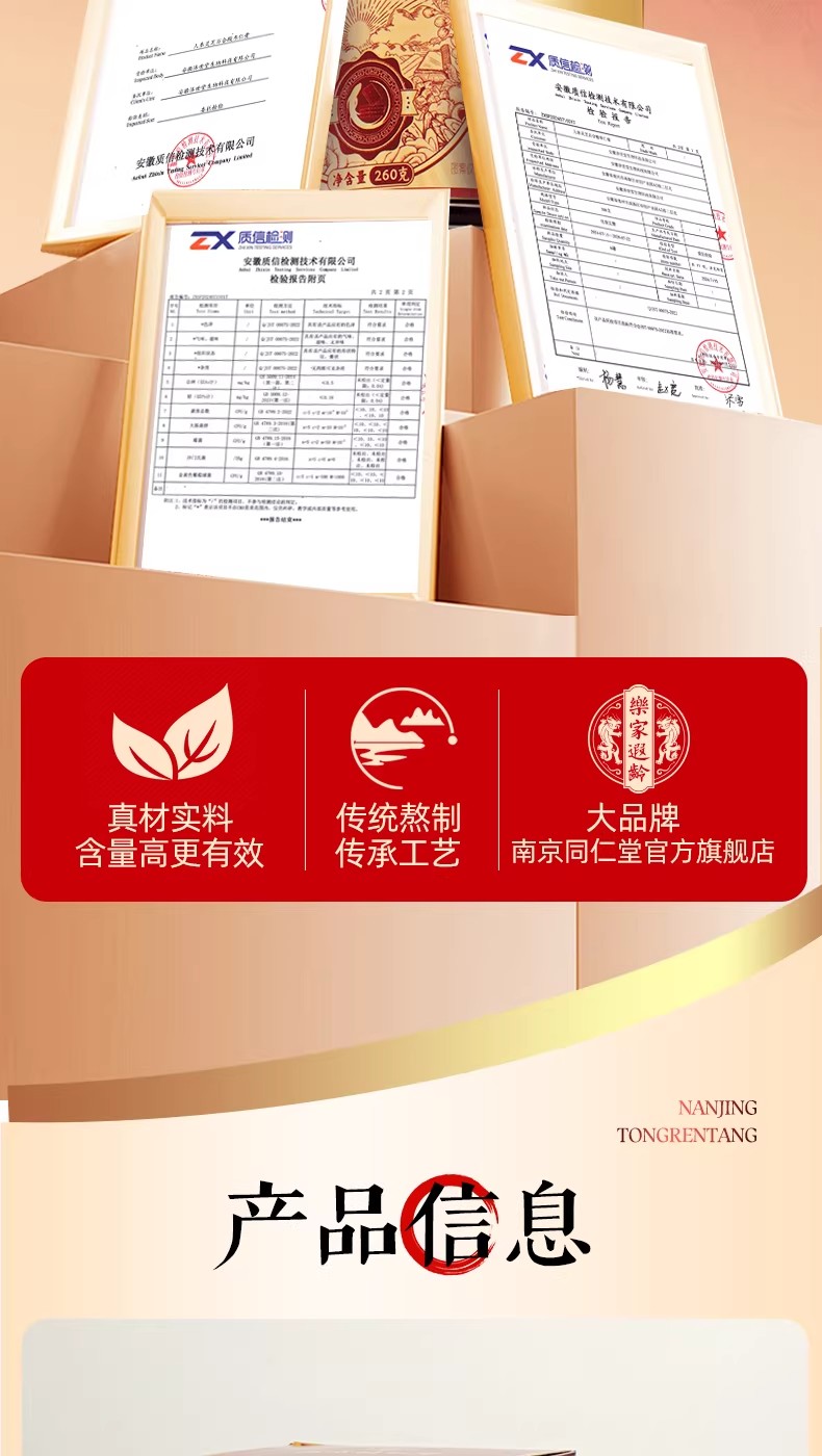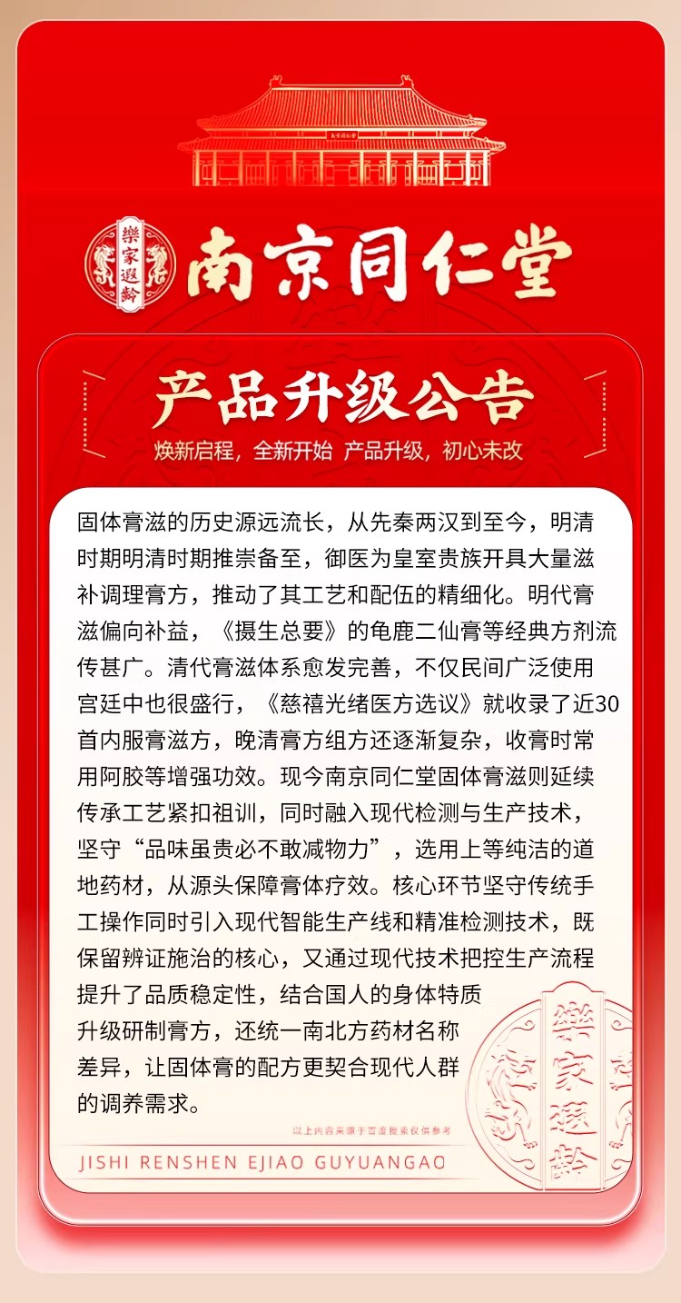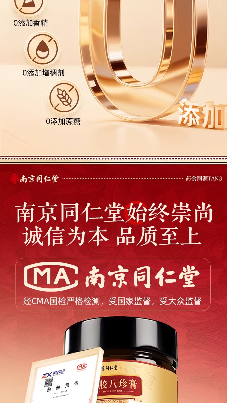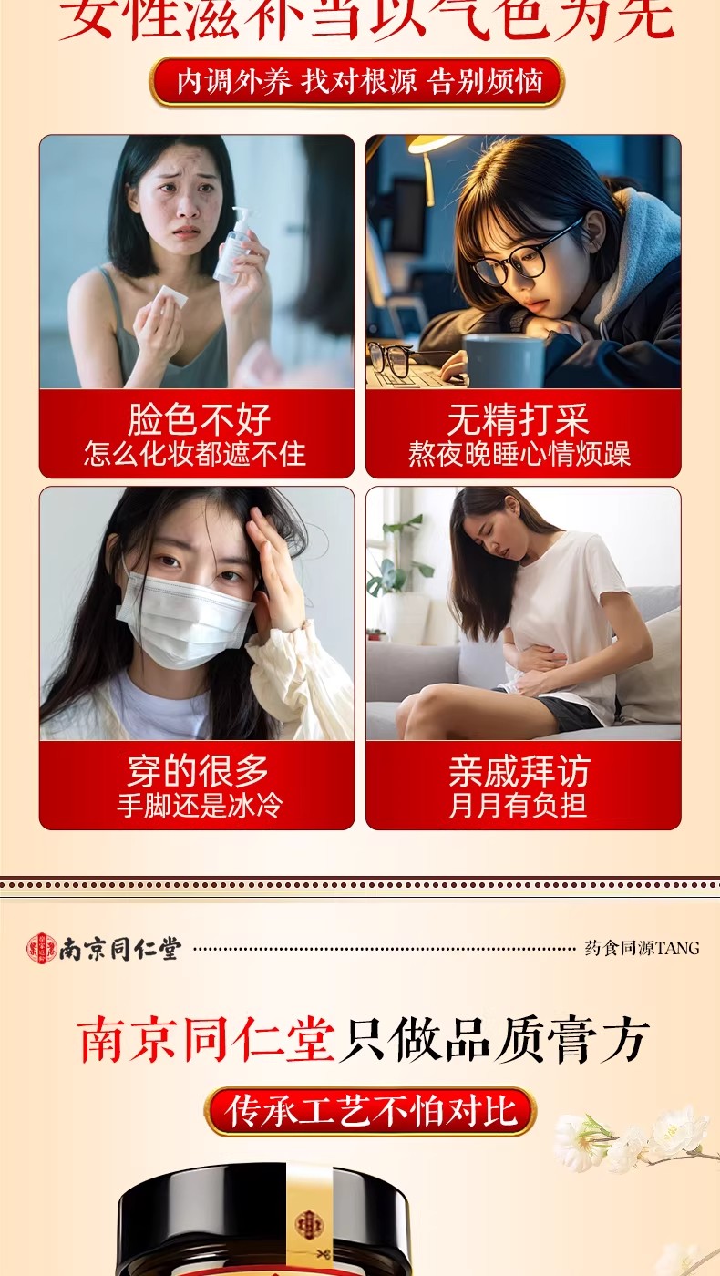 南京同仁堂紅參阿膠八珍膏補氣補養雙血調理養生膏 260 克