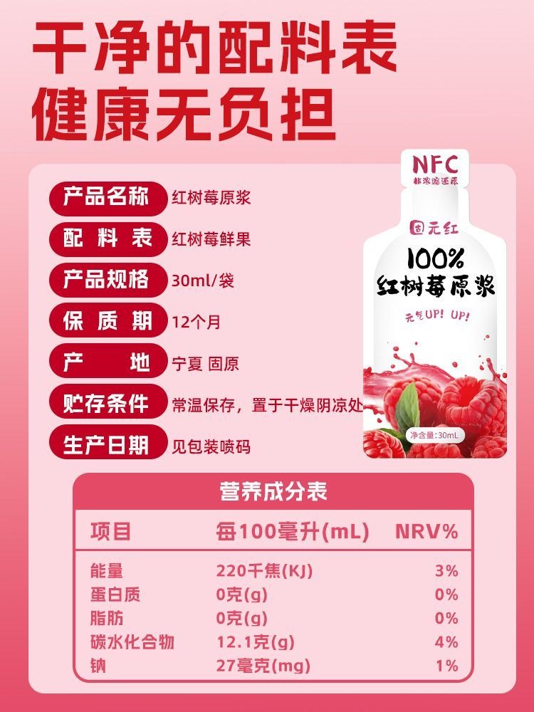 Red raspberry fresh squeezed puree juice 60 ml
