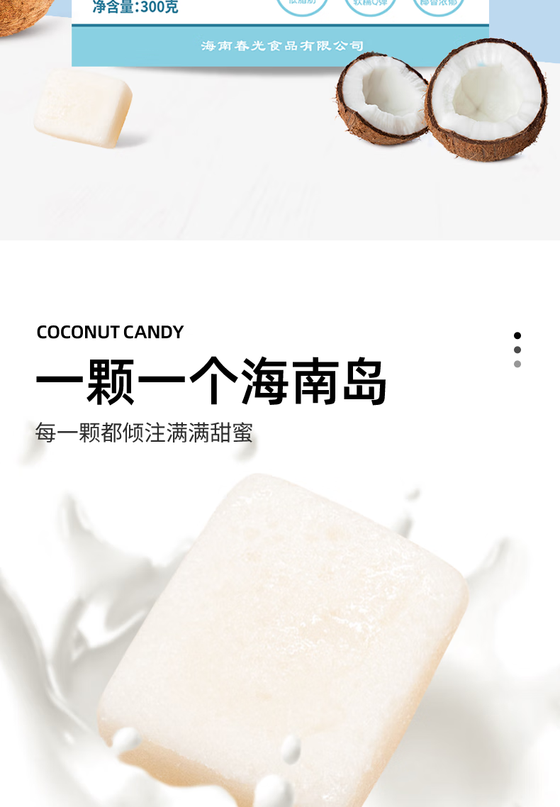 春光食品 海南特产 特制椰子糕 水果软糖果 300 克