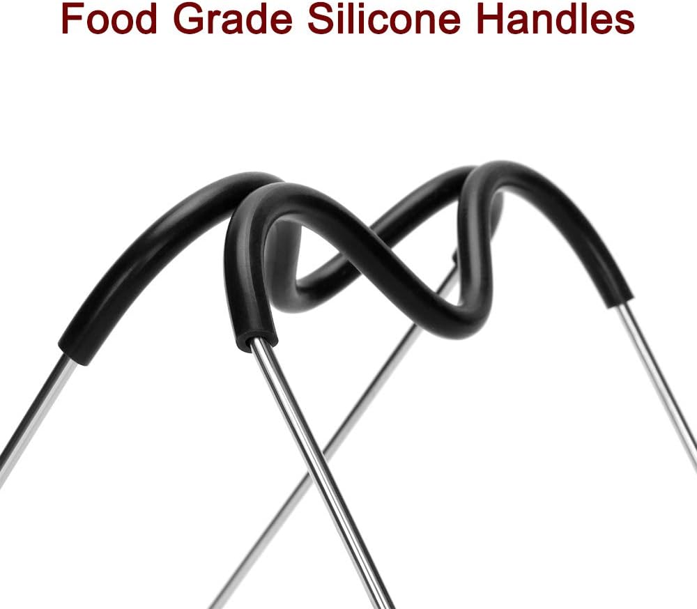 FOOD GRADE MATERIAL - This steamer rack trivet with handles is made of premium food graded stainless steel, rustproof and durable. the whole trivet is smoothed and will not scratch the inner pan of pressure cooker. Healthy and eco-friendly, safe and reliable. Easy to use, easy to clean, dishwasher safe.