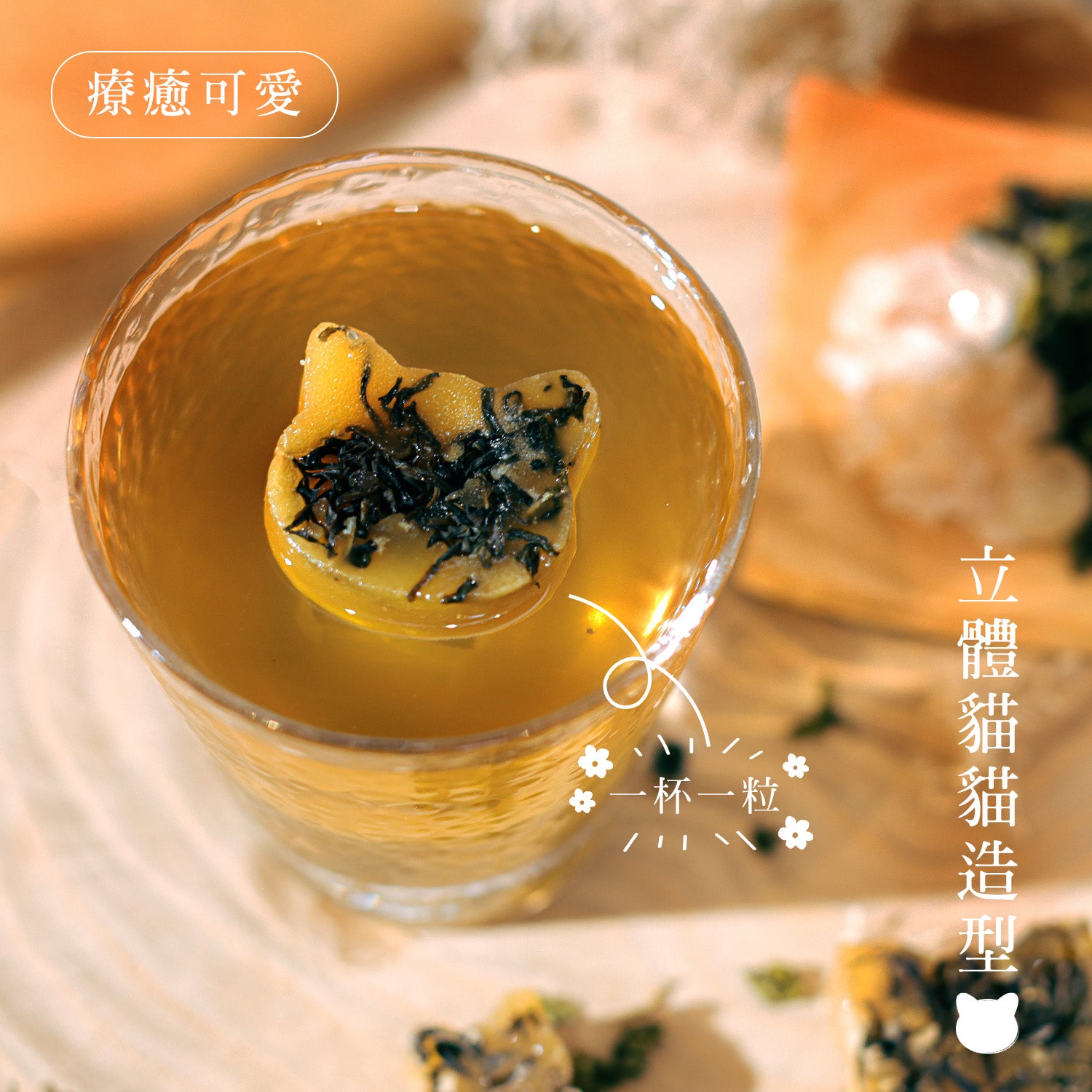 採用經茉莉燻香的高山烘青綠茶,配合頂級玉林甘蔗熬煮的冰糖,加上天然優質蜂蜜,滋潤抗氧、美容護膚、強化免疫力。兩款貓造型糖磚以台灣古方,經過1 6道工序匠心熬煮而成。全天然、無添加甜味劑及防腐劑,安心養生,療癒身心!