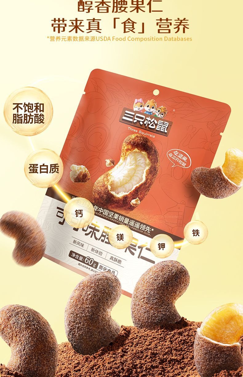Three Squirrels roasted cashew kernels 60 g