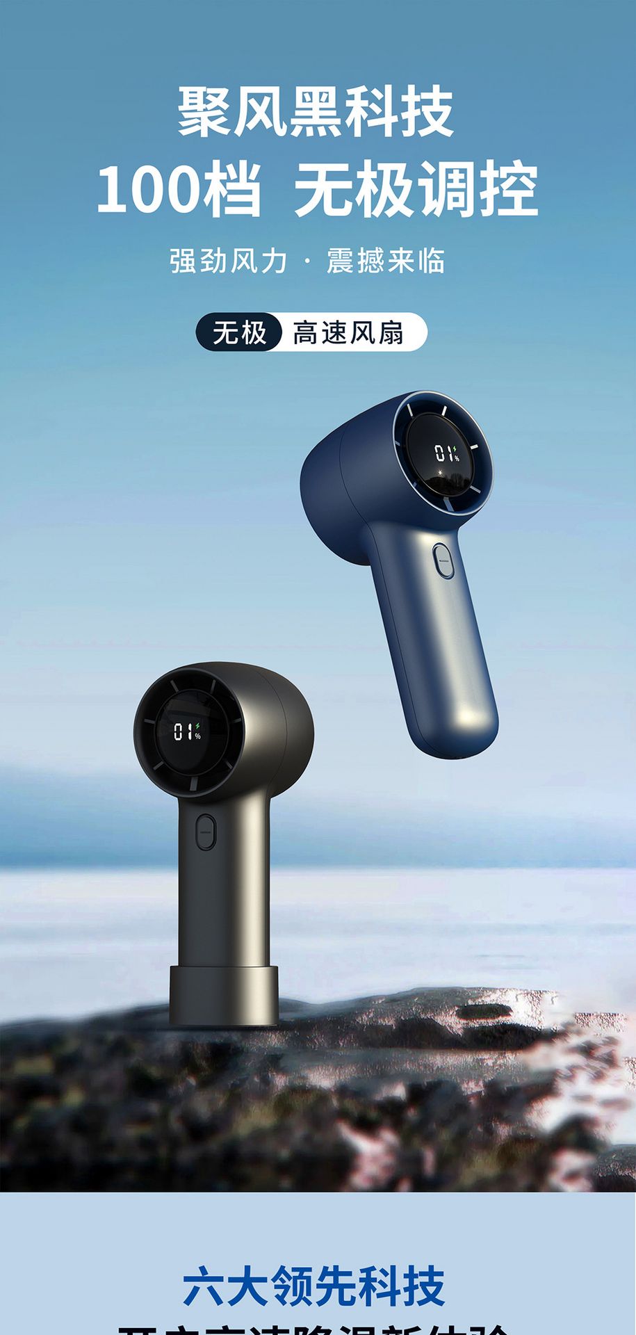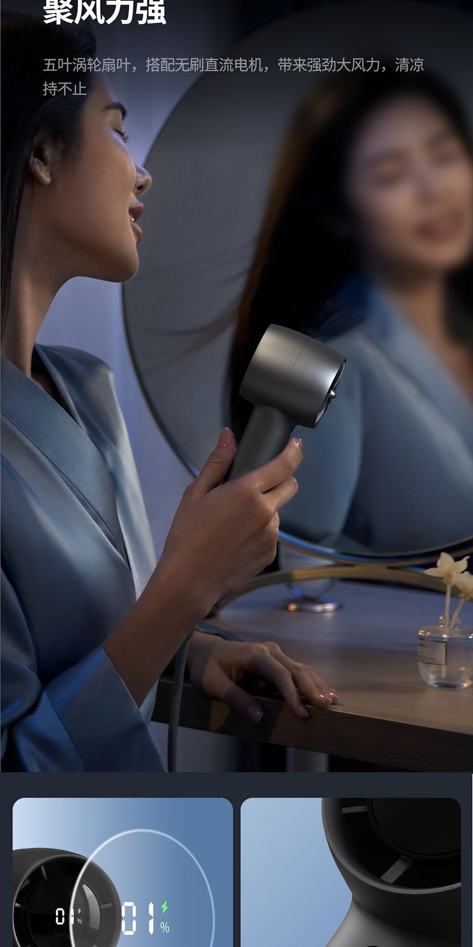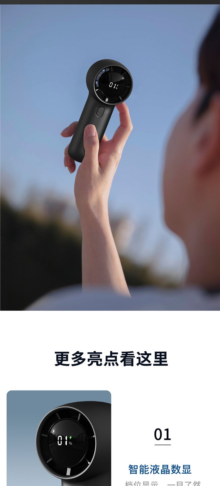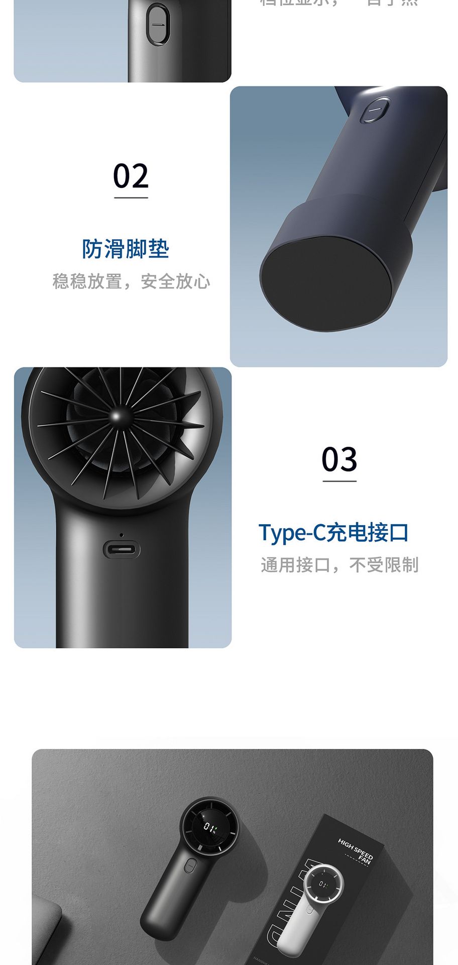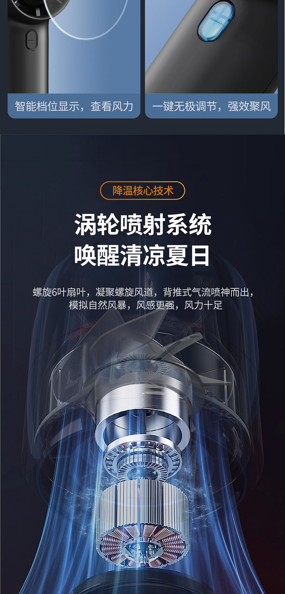 Turbo Digital Display Handheld USB Fan Dark Blue 1 phần