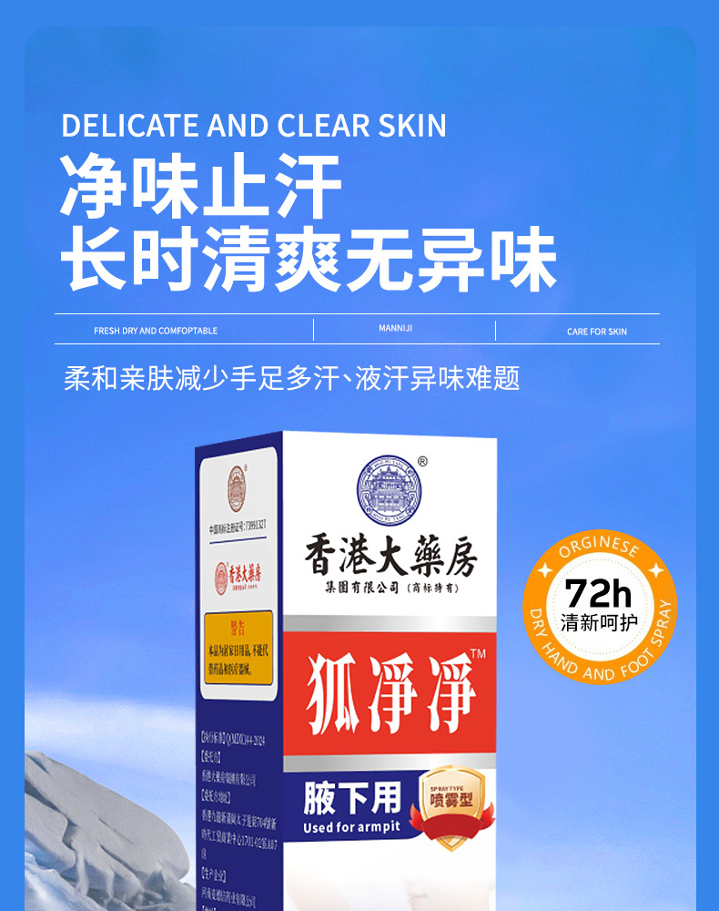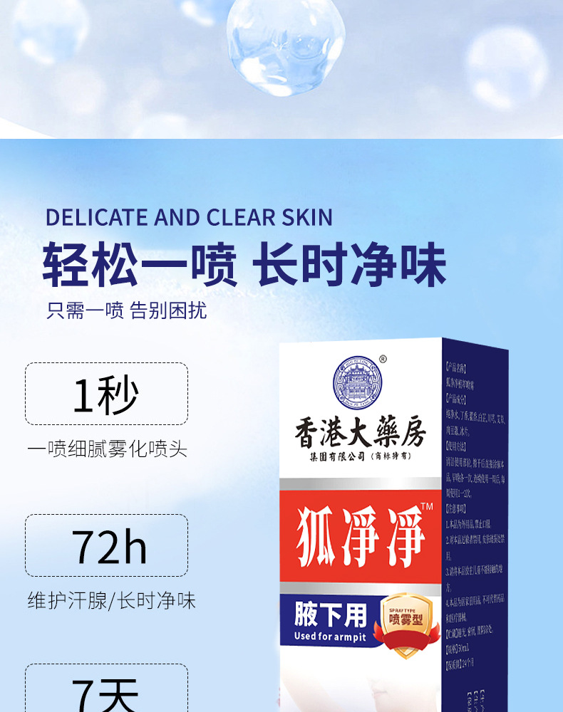 狐净净香港大药房狐臭净喷雾腋下止汗露去汗香体露 1 份
