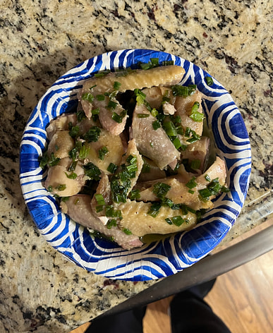 做了一只葱油鸡。老人小人都爱吃。很鲜很香。