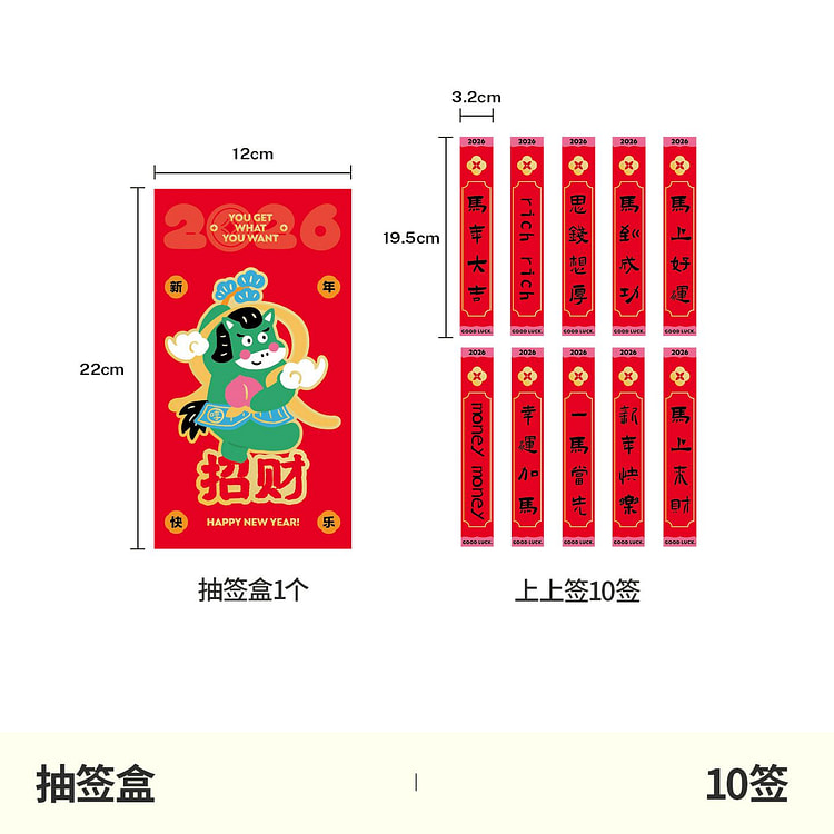 $10.992026马年抽签红包幸运盲盒红包 抽签筒 10签 1 份商品从邁迪甄選起买$49.99赠 KT脏衣篓可折叠收纳筐洗衣篮 *1