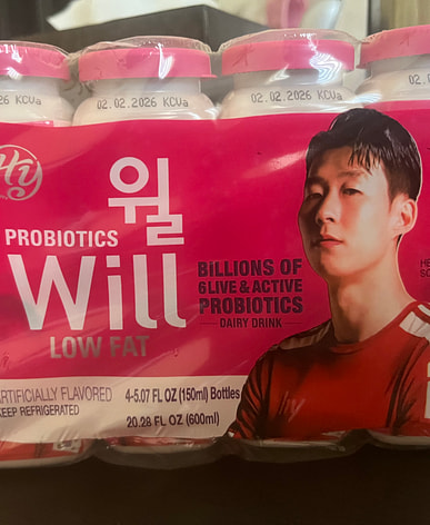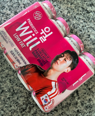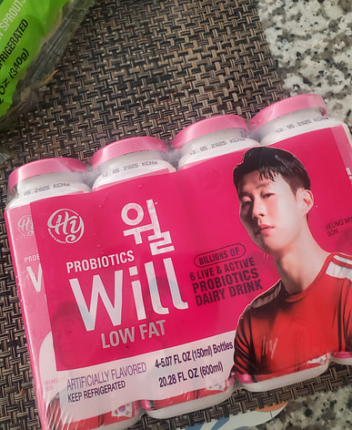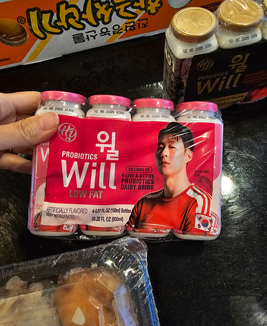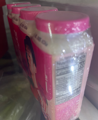 它美味又健康……这是我第一次买低脂的……这是韩国香型的……这是养乐多。