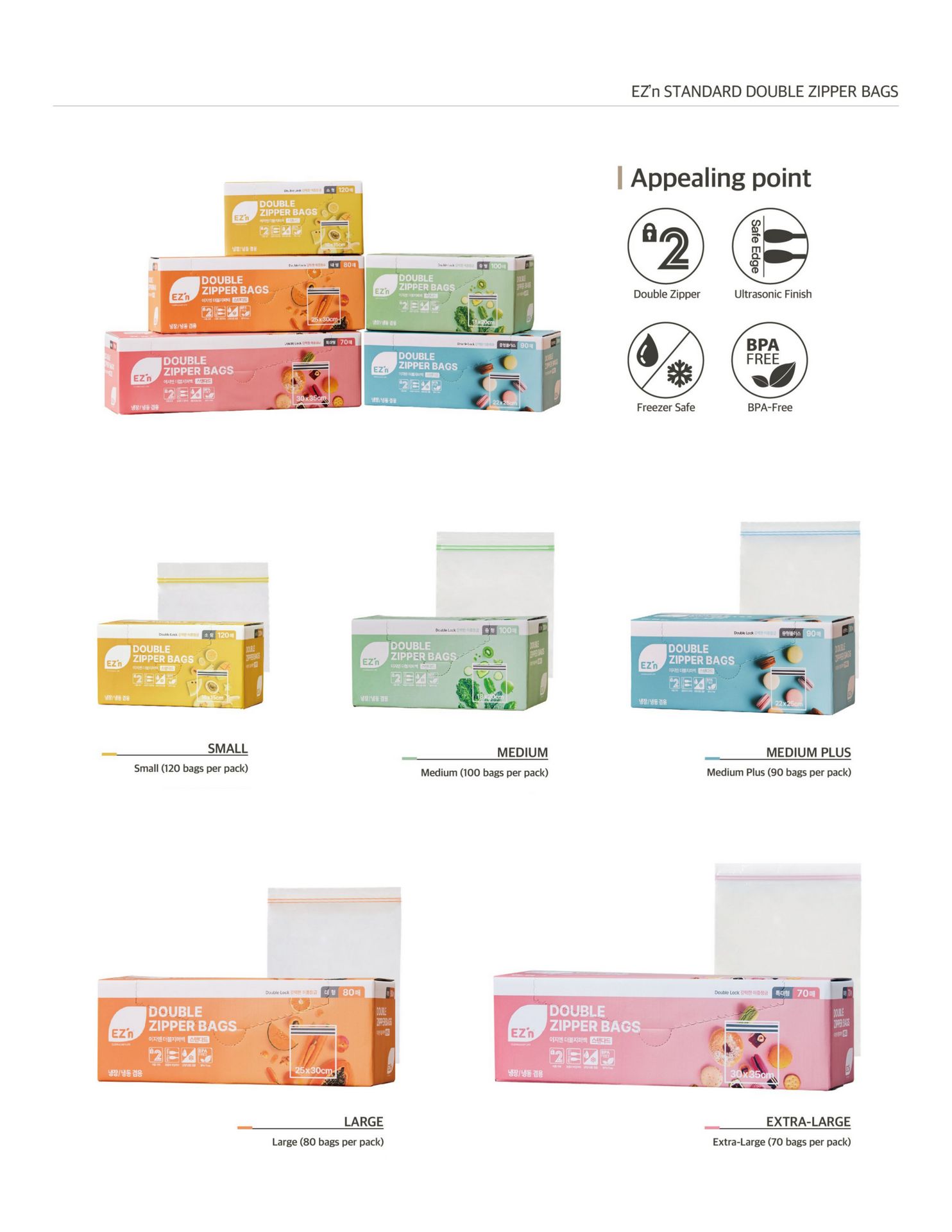 [EZ'N] 韩国大号 双筋加厚保鲜密封袋 20只 1 份