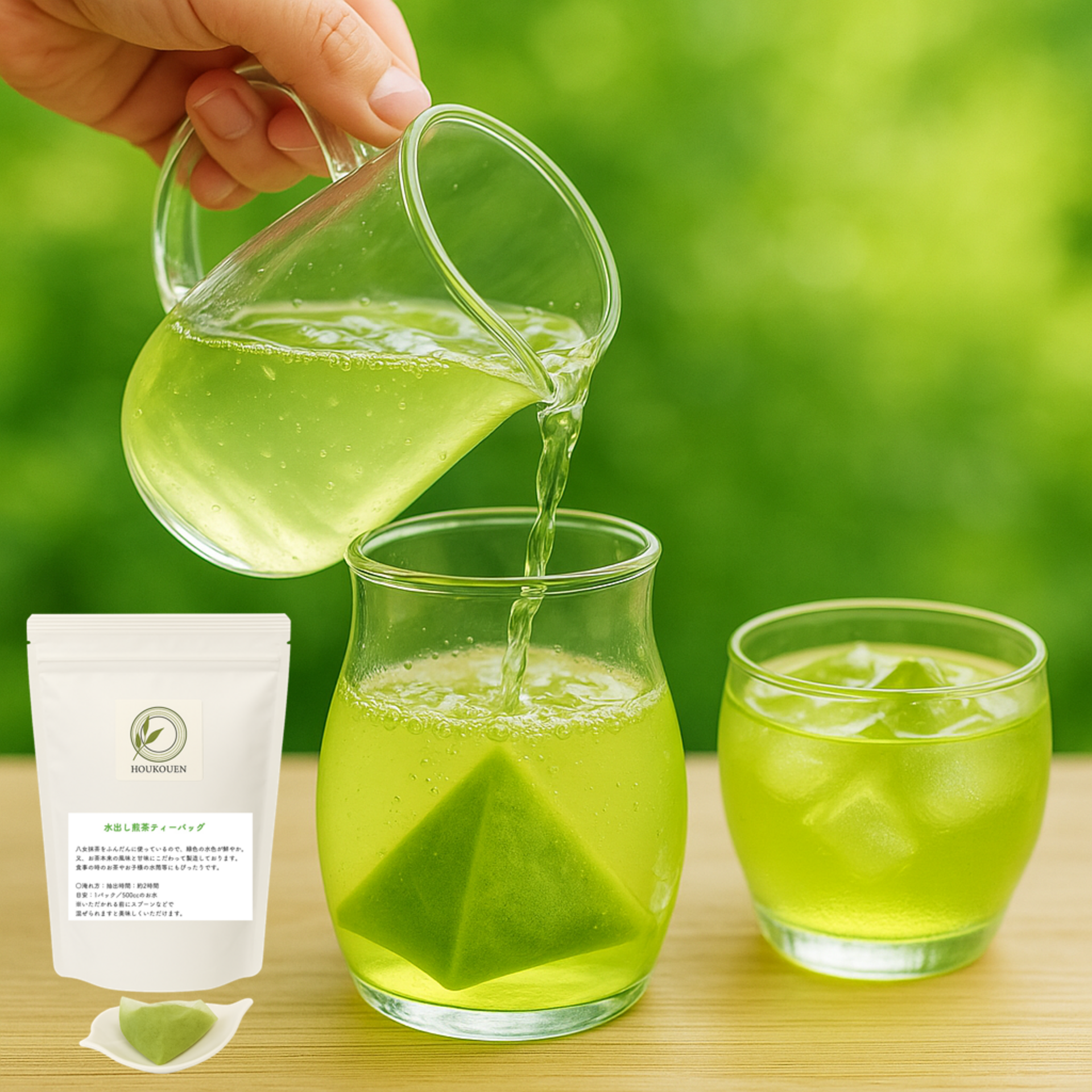 采用福冈县的优质八女抹茶制成,冲泡后呈现出充满活力的绿色茶汤。