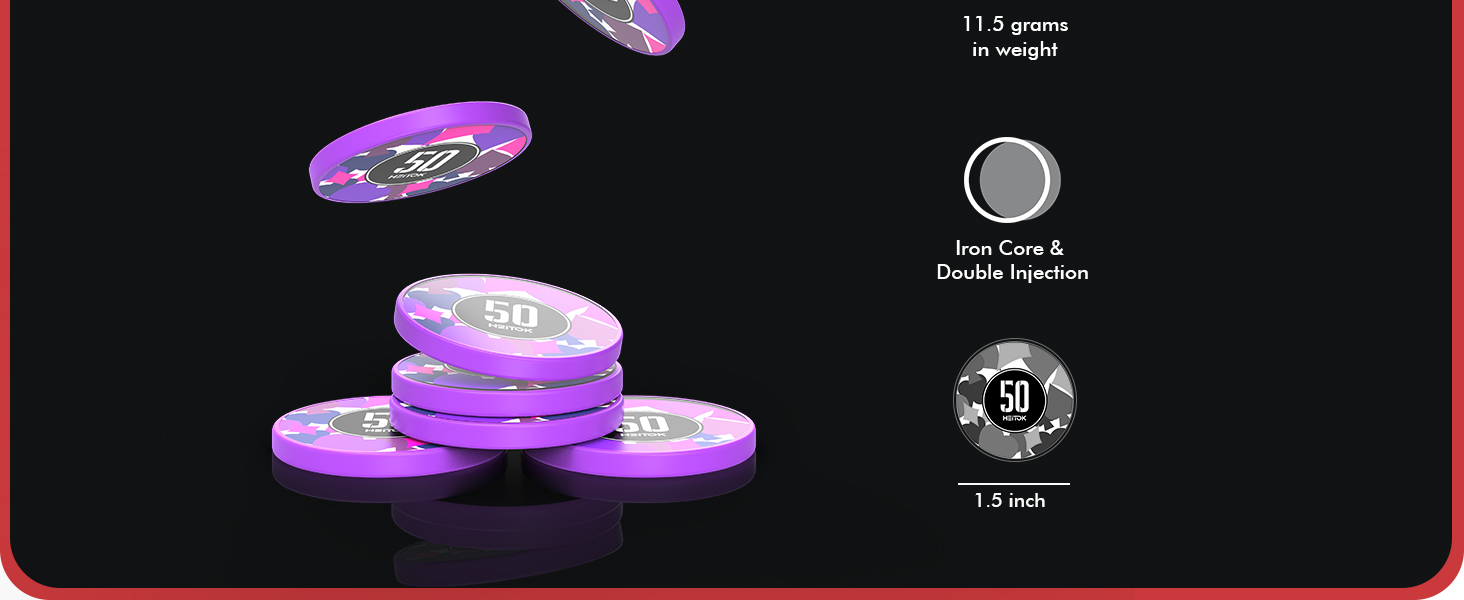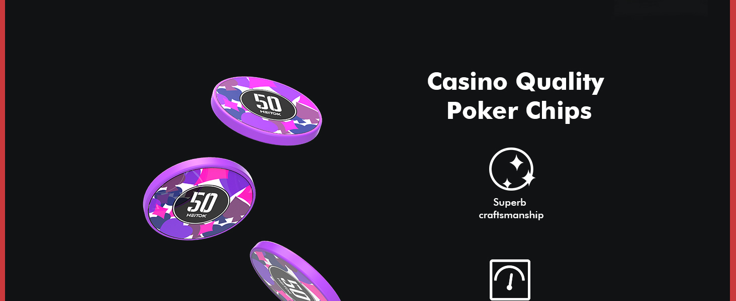 优质扑克筹码 - 我们的筹码由全新可回收 ABS 材料制成。它们拥有专业的赌场风格,图案细节精致,触感出色,满足客户对专业和卓越产品的要求。