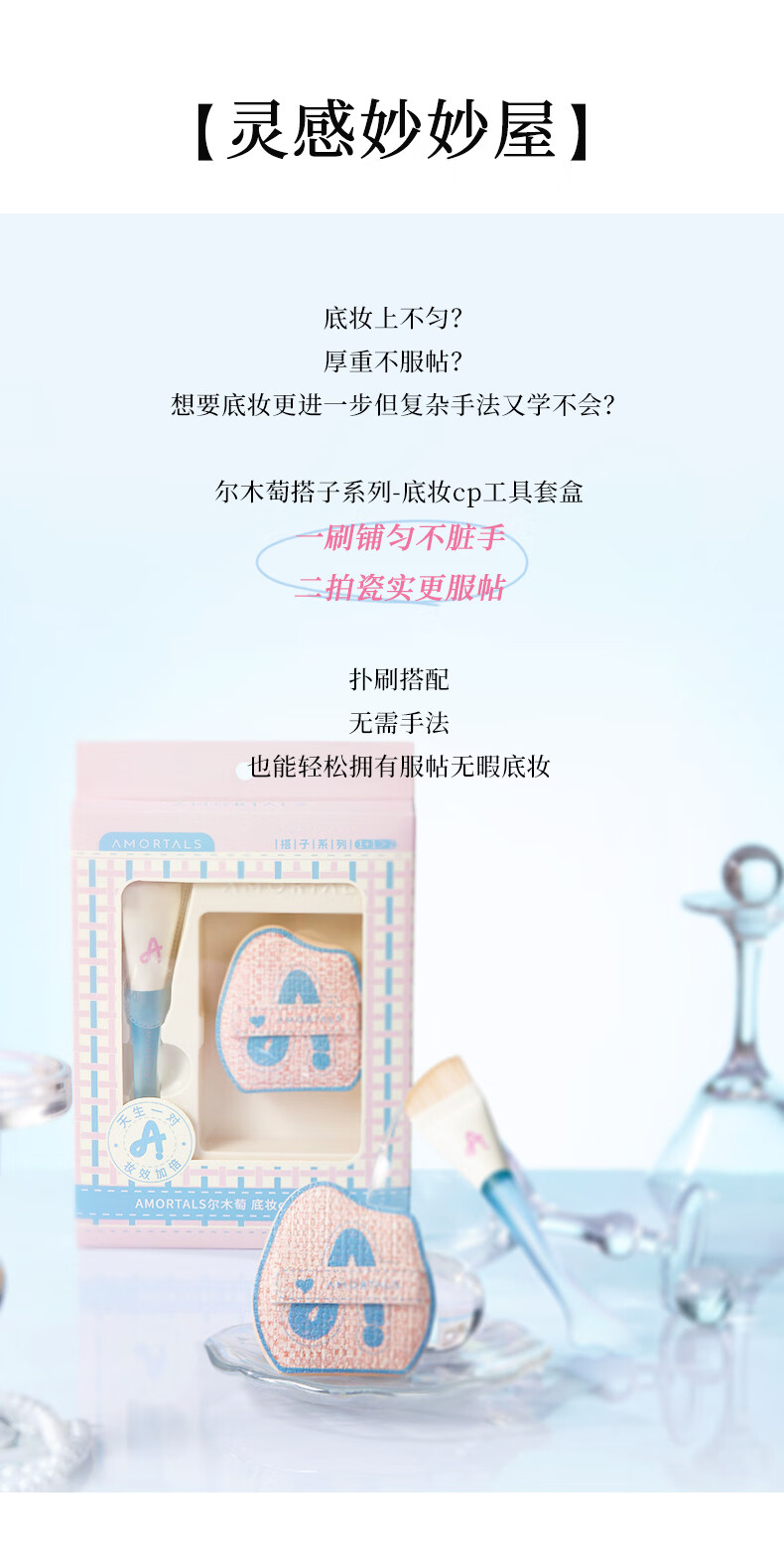 AMORTALS Makeup Sponge, Foundation Brush Set 1 box