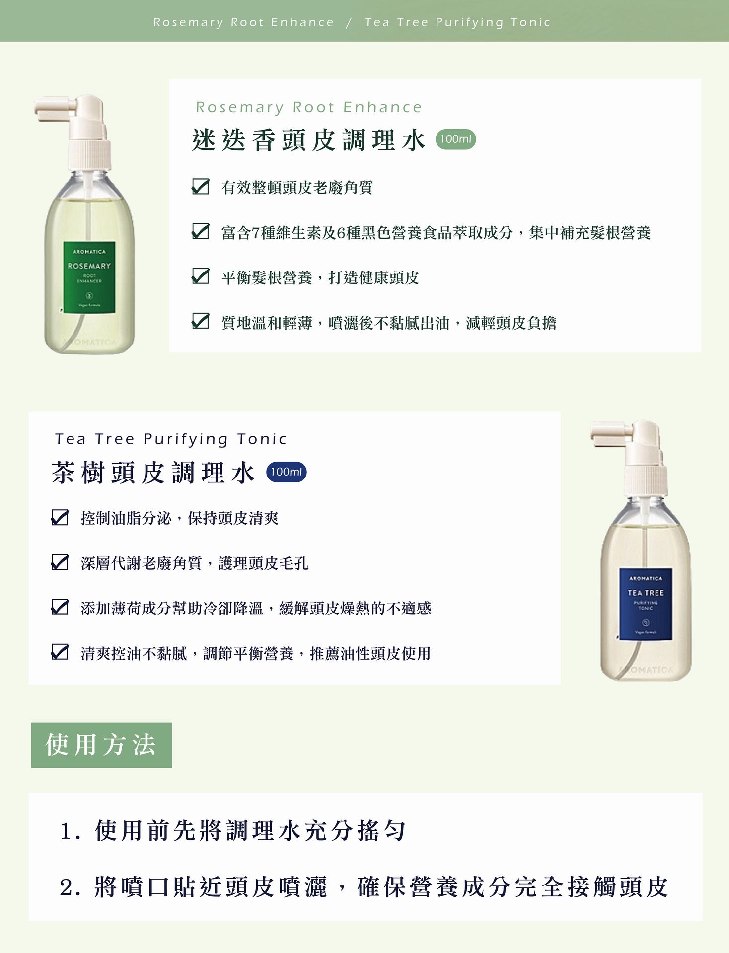 A scalp tonic formulated with Tea tree and Peppermint cools and relieves scalp while controls excessive sebum.