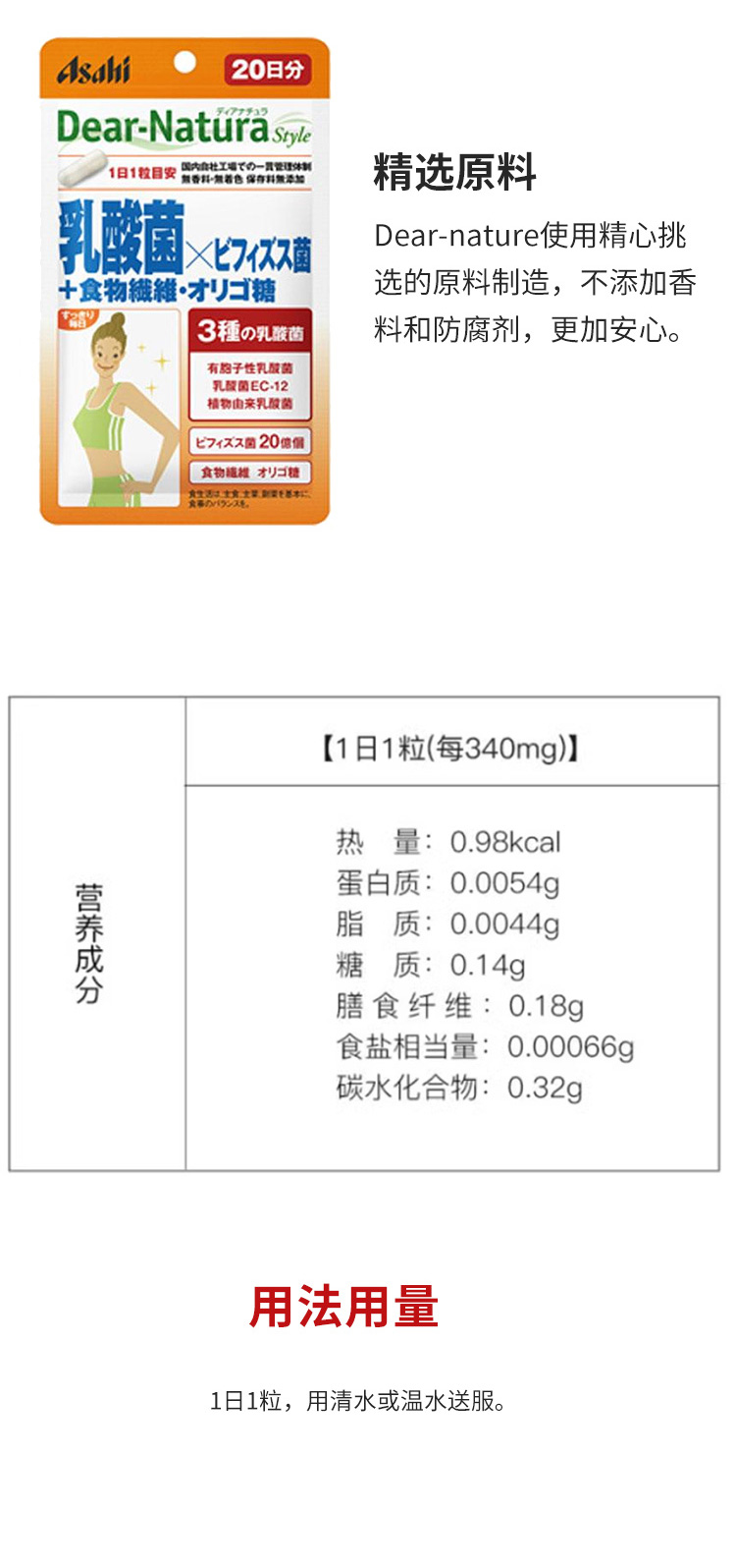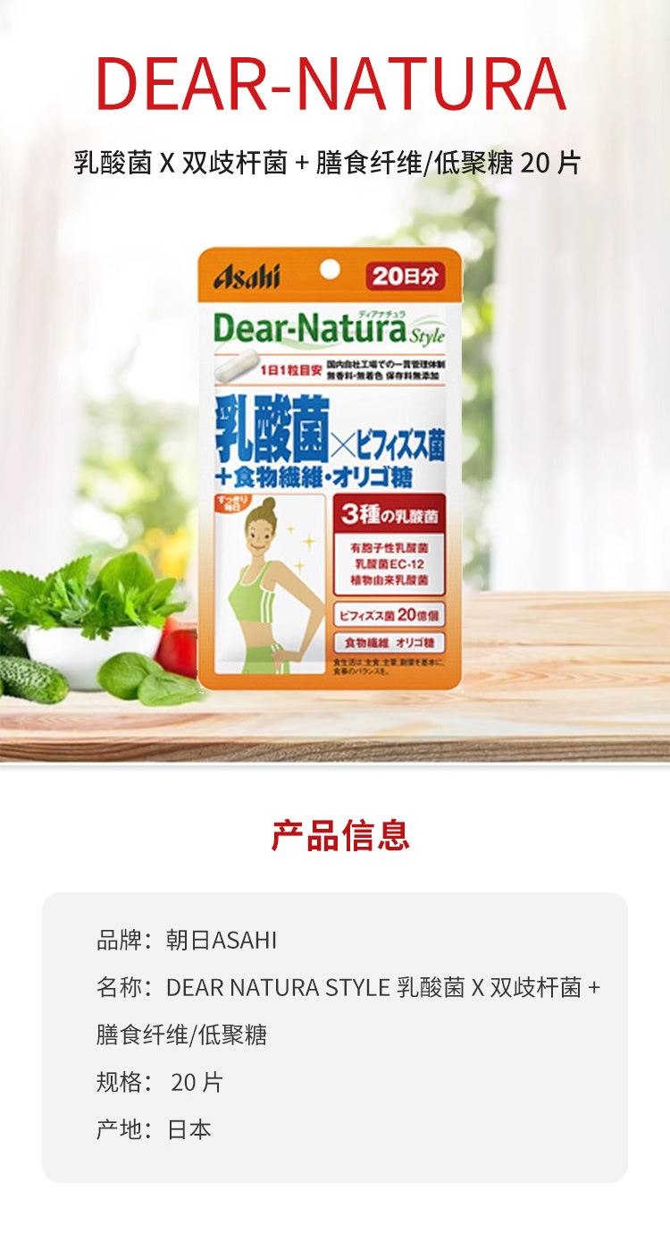 朝日 乳酸菌 雙歧桿菌 膳食纖維低聚糖 20粒 1 份