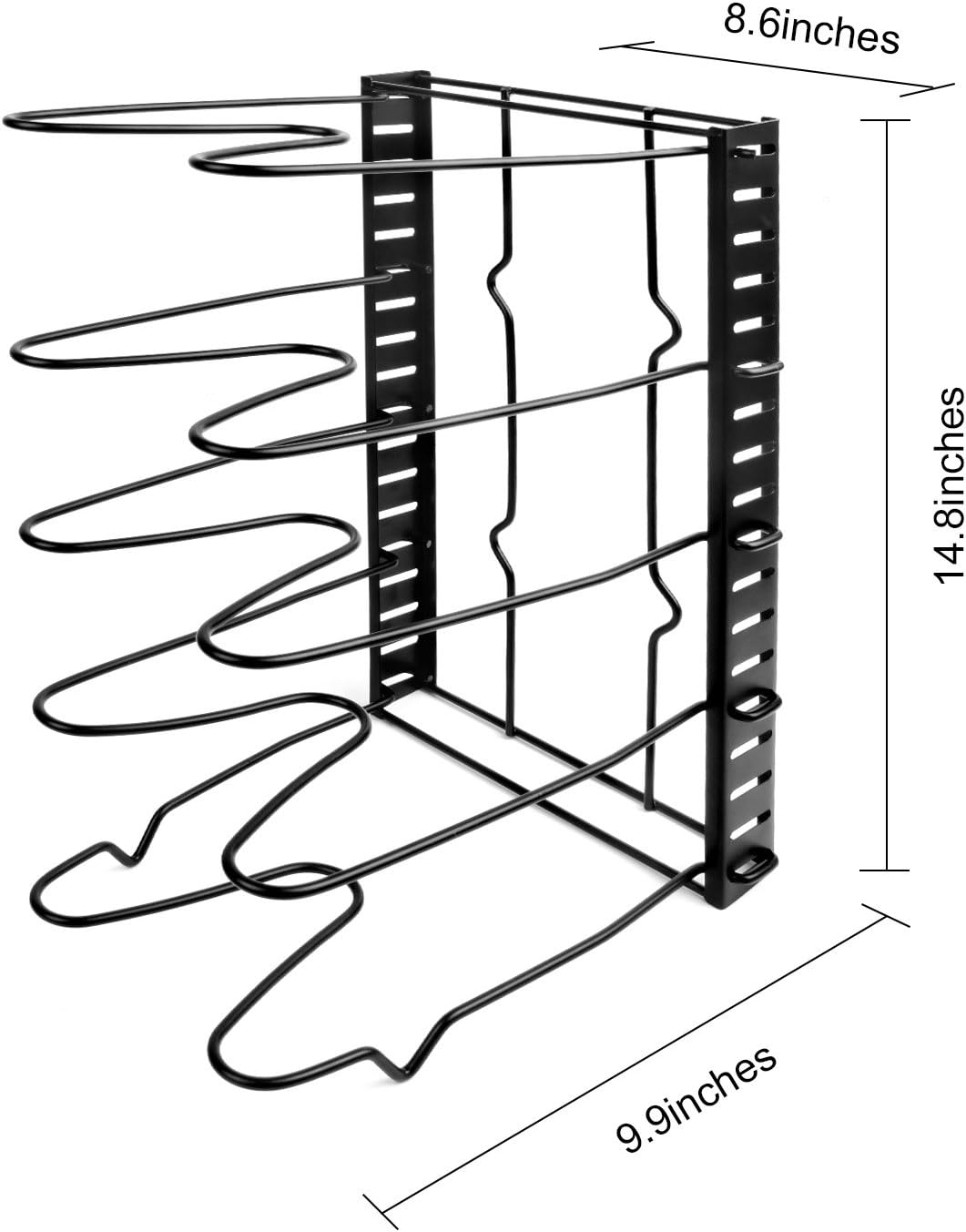 可調節廚房鍋碗瓢盆架 - 高度可調節架 - 廚房炊具收納 - 櫥櫃和食品儲藏室鍋碗瓢盆蓋架收納盒 - 黑色金屬(黑色) - 8.3 英寸深 x 15 英寸寬 x 10 英寸高