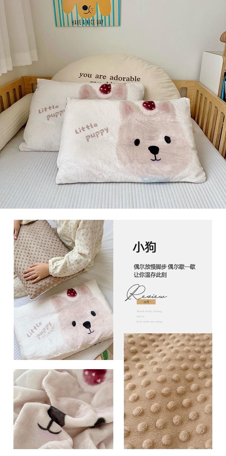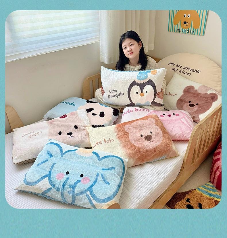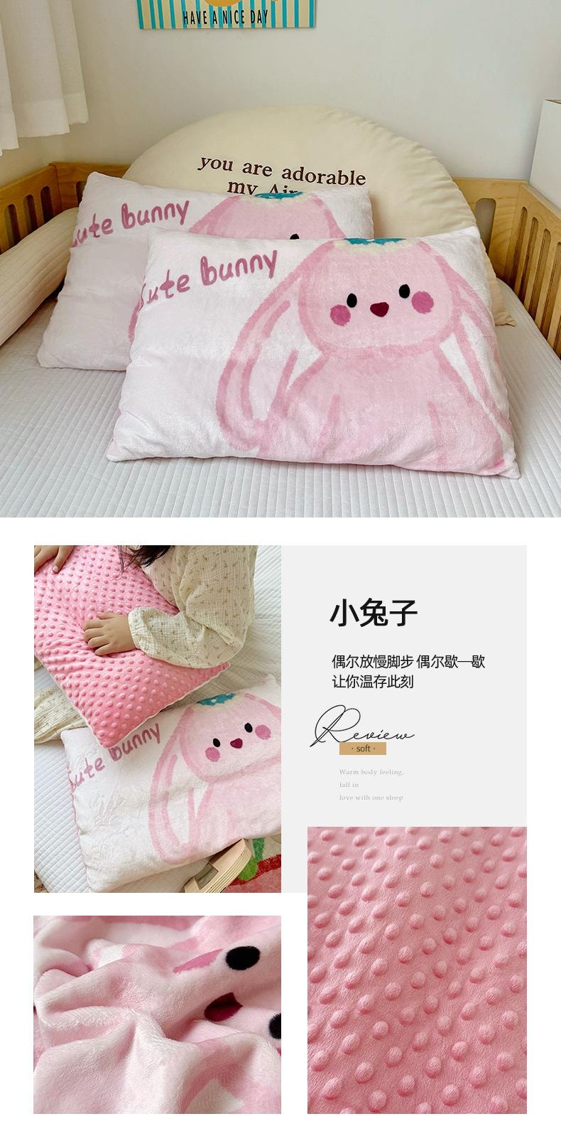 小动物暖绒枕头套 40cm*60cm 单枕套-兔子 1 份