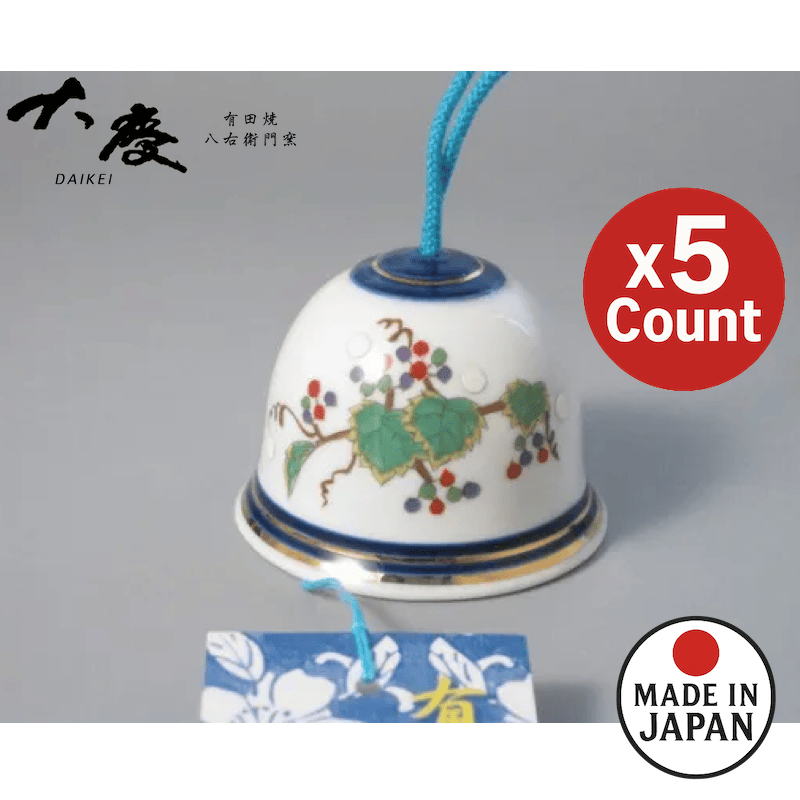 这套5个日本瓷风铃(“风铃”),产自日本瓷器的发源地有田。有田烧(Arita-yaki)拥有400多年的历史,以其品质和精美而享誉全球。
